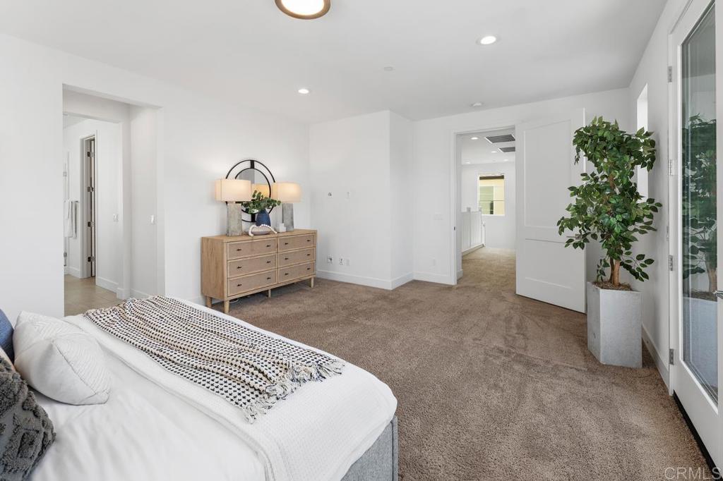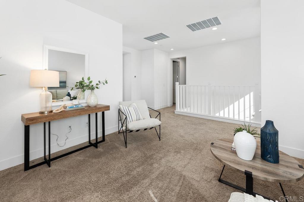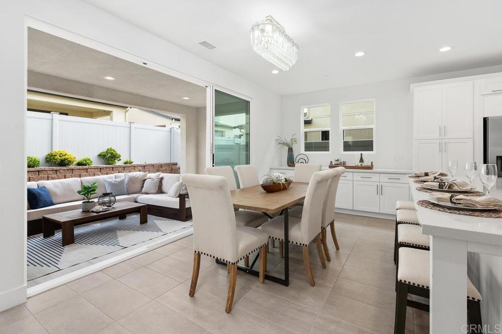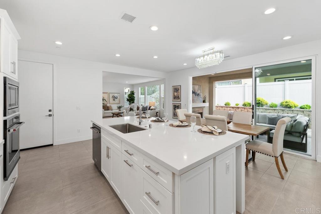 Welcome to this exceptional 4-bedroom, 3.5-bath, two-story residence located in Brio at 3Roots, one of San Diego’s most vibrant master-planned communities. This recently built home offers a rare blend of sophisticated design, modern comfort, and a premier central location. The bright, open-concept floor plan is filled with abundant natural light from expansive windows throughout the home. At the heart of the space is the chef’s kitchen, featuring a large center island, quartz countertops, stainless steel appliances, ample storage, and sleek contemporary finishes—perfect for everyday living, family meals, and entertaining. The dining area opens smoothly into the covered California room, complete with a cozy fireplace and fully retractable sliding doors, creating an effortless indoor-outdoor living experience ideal for gatherings or relaxing evenings. A full bedroom with an en-suite bathroom on the main level provides flexible living options for guests, multigenerational living, or a private home office. Upstairs, a spacious loft offers the perfect bonus space—ideal as a media room, playroom, or study area. The primary suite is a true sanctuary, featuring a spa-style soaking tub, dual vanities, and a generous walk-in closet. Two additional well-sized bedrooms and a bathroom provide the ultimate comfort. 2 car garage with epoxy flooring and tall storage cabinets. Life at 3Roots is designed with families in mind, offering resort-style amenities including two pools, parks and playgrounds, walking trails, and a state-of-the-art fitness center with classes by Fit Athletic. With a strong sense of community, abundant outdoor spaces to explore, and a central San Diego location close to schools, shopping, and dining, this turnkey home delivers the perfect balance of modern living and a family-friendly lifestyle.