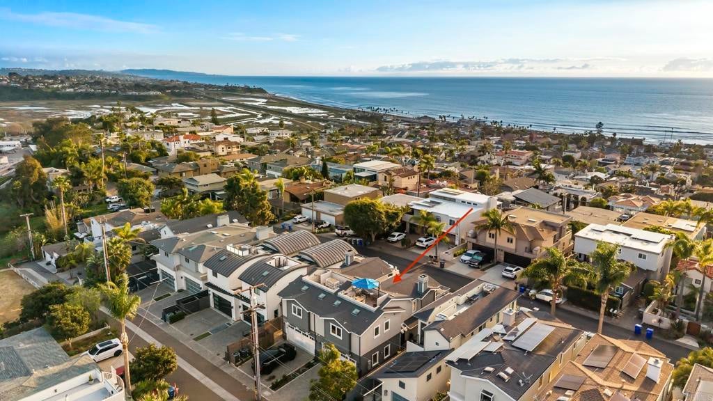 Bring your toothbrush, surfboard, and beach towel! This turnkey, move-in ready luxury coastal home, set on one of Cardiff-by-the-Sea’s most sought-after and walkable streets, offers breathtaking panoramic ocean views from its private rooftop deck, effortless indoor–outdoor living, and a level of thoughtful luxury upgrading rarely found in a coastal home of this scale. Meticulously refreshed with a focus on design, comfort, sophisticated modern finishes, and long-term livability. The main living spaces feature wide-plank European Oak engineered hardwood flooring imported from Spain, creating a warm, modern foundation for everyday coastal living. Bedrooms and additional flex spaces (ideal for home office, kids’ rooms or guests) are newly carpeted, while fresh interior paint, new molding and trim, and curated lighting elevate the home’s clean, contemporary aesthetic. At the heart of the home, the chef-inspired gourmet kitchen has been fully upgraded with a suite of premium black stainless Bosch 800 Series appliances, including an induction range, dishwasher, and refrigerator, complemented by a Z-line microwave drawer, new plumbing fixture, custom pantry/coffee bar, and updated cabinet hardware throughout. A former soffit and fan were removed to open the kitchen, creating unobstructed sight lines—so you can enjoy ocean views even while cooking or hosting. The expansive great room flows seamlessly to the deck through bi-fold doors, creating a true indoor–outdoor experience ideal for effortless coastal California living. Upstairs, a full rooftop deck with a built-in outdoor kitchen offers a rare, elevated entertainer’s dream space with stunning panoramic views—perfect for sunset dinners, al fresco gatherings, or morning coffee overlooking the Pacific. The spacious primary suite has been enhanced with a custom closet system, ceiling fan, and new blinds, including voice-controlled electric blinds for effortless comfort and privacy. There is a full-size laundry room, abundant built-in storage throughout—plenty of room for surfboards, bikes, and all your active lifestyle gear—and a host of smart-home features: a SimpliSafe security system with doorbell and three cameras, a Wi-Fi–enabled garage keypad, and an upgraded electrical panel ready for Level 2 EV charging (240V). Outdoors, new plantings with drip irrigation enhance the property’s curb appeal while maintaining easy low maintenance. A paved alley leads to a usable two-car garage plus parking for up to 4 additional cars—an incredibly rare feature in this highly desirable beach-close enclave. Beyond its current beauty, this home delivers exceptional future flexibility and long-term value. The lower floor was built to allow for future conversion to an income-producing Accessory Dwelling Unit (ADU)—opening the door for short- or long-term rental income, guest accommodations, multi-generational living, or a private executive office space (ideal for remote work, creative pursuits, or a personal yoga/gym retreat to match your active lifestyle). What truly sets this home apart is its incredible lifestyle: Stunning ocean views. Exceptional walkability to the beach, shops, cafés, and restaurants. A true great room layout opening to the deck. A full rooftop entertaining level. Abundant storage rarely found in a home of this size. And a location that puts Cardiff’s beaches, shops, cafés, and coastal energy just moments away. Ideal as your primary home for an active coastal lifestyle or as a turnkey second home and coastal retreat—this is not just a home—it’s an ideal vantage point for living the ultimate Cardiff-by-the-Sea lifestyle.