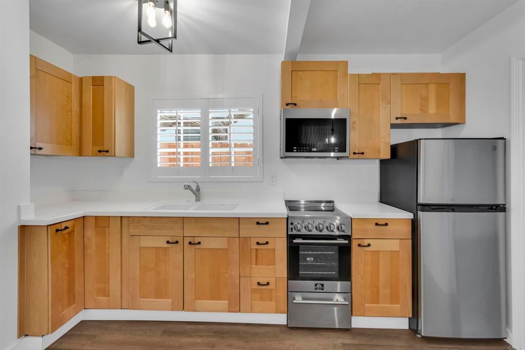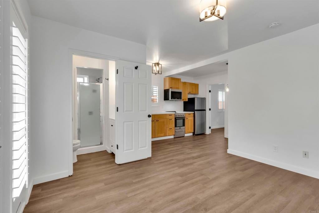 DARLING South Kensington Spanish style 2BR/1BA home and detached 1BR/1BA bungalow, both with their own private fenced yard in a wonderful picaresque neighborhood, two blocks south of Kensington Village/Adams Avenue. The main house has original hardwood floors, coved ceiling detail and charming built-in bookshelves flanking the vintage tiled fireplace. The home includes a separate dining room and mud room (makes a great home office). The home includes new stainless appliances, quartz counters, A/C mini splits in the bedrooms and living room. THE BACK BUNGALOW WAS ORIGINALLY A 2-CAR GARAGE CONVERTED TO LIVING SPACE WITHOUT KNOWN PERMITS, NOT INCLUDED IN SQUARE FOOTAGE, AND MAY NOT MEET CURRENT ZONING OR BUILDING REQUIREMENTS. The back bungalow was remodeled in 2024 by a licensed contractor and includes all new stainless appliances, plumbing fixtures, lighting, entry door, LVP, Plantation Shutters, and A/C heat-pump mini-split. Both the front and back homes are tenant occupied and will only be shown with accepted offer. The front house rents for $3,100/mo; bungalow rents for $2,195/mo including SDGE. Tenants pay 90% of water bill and 100% trash. This one is not to be missed! AGENT IS OWNER/BROKER.