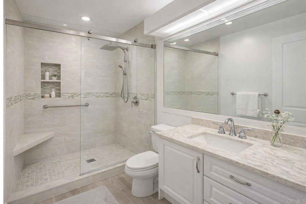 Welcome to Oaks North #1 — a lifestyle worth investing in. Highly sought-after end unit offering privacy, natural light, and exceptional convenience—this ground-floor residence has no steps and no one above, making it both comfortable and accessible. Enjoy peaceful pastoral views with a peek of the golf course from your private deck—an ideal setting for morning coffee or relaxing evenings. Positioned along one of the community’s most desirable walking paths, this home sits near Paseo Del Verano, where residents enjoy an active, scenic atmosphere from morning to night. Recent improvements include a new roof installed approximately 3 years ago, providing long-term value and peace of mind. The interior is ready for thoughtful updates, providing a blank canvas to customize and create a space that reflects your personal style and vision. Located in one of North County’s most desirable 55+ communities, Oaks North offers an active, welcoming lifestyle and an outstanding community center. Residents enjoy access to a wide range of amenities, including a pool and water aerobics, spa, gym, art classes, game room, full library, ceramics studio, movie nights, occasional dances, wood shop, pickleball, and seasonal social gatherings. This is more than a home—it’s a lifestyle defined by comfort, activity, and community. Several images are labeled as virtually modified to demonstrate potential upgrades and vision.