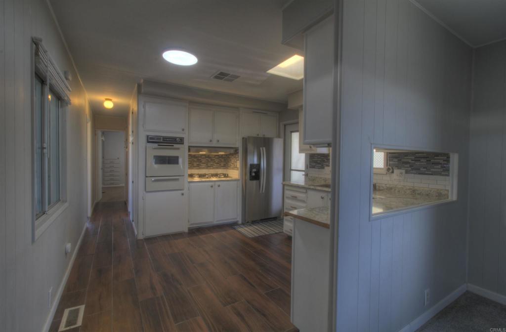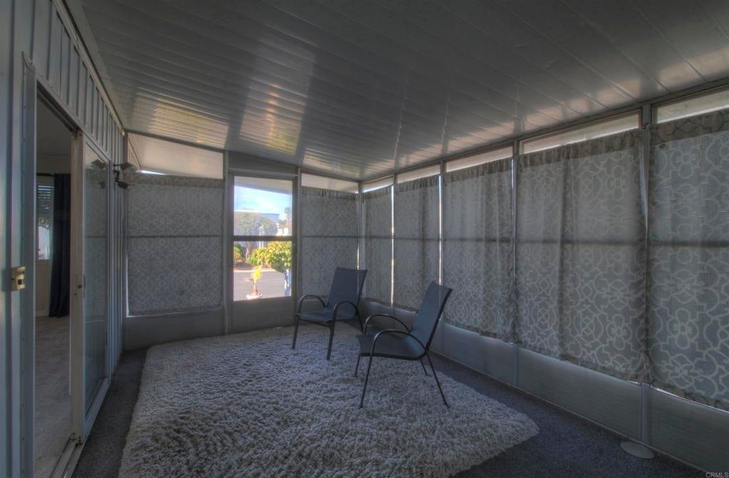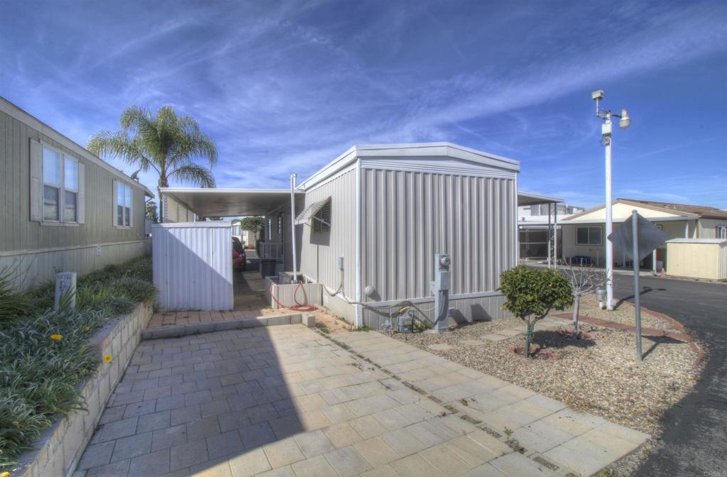 Welcome to this updated senior living treasure located on a corner lot with extra car parking in the rear. The remodeled kitchen features cultured granite countertops, gleaming stainless-steel appliances and stylish laminated wood flooring. A solar tube bathes the space in natural light. Relax in the spacious living room, complete with newer neutral carpeting and west facing windows, perfect for enjoying afternoon light. The primary suite boasts 2 large closets and clever built in wall drawers. A versatile second bedroom was partitioned from the sunroom. It boosts charming louvered wood closet doors and a private slider which gives back access to the street. Enjoy the "bonus" square footage of the enclosed sunroom. The washer and dryer, which stay, are found here Outside a shed is convenient for extra storage. Extra parking on the property is adjacent to the carport. Park amenities include guest lodging that can be rented for a nominal fee for visiting family or guests. A heated pool, spa, library, exercise room, pool tables, shuffleboard courts, a remodeled kitchen, great room and dining area can also be enjoyed by residents. RV parking is available for a nominal fee. Close to grocery stores, bus stops, restaurants, banks and dentists.