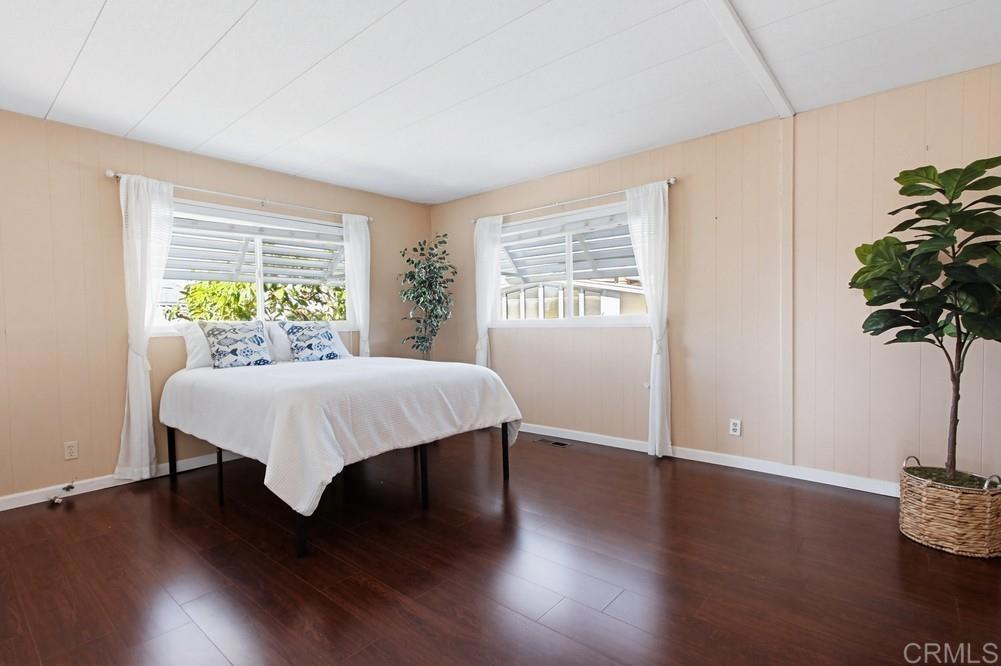 Ocean Views!!! Beautiful ocean view home located in highly desired Palomar Estates West. This home has a wonderful open floorpan to make it feel very spacious. Wood laminate floors are throughout the home. This home has dual-pane vinyl windows that will keep the home a wonderful temperature in the temperate San Marcos climate. Enjoy the amazing ocean breezes from your large front porch. This home is on registration which means NO PROPERTY TAXES. Palomar Estates West is a 5 star 55+/35+ senior rent controlled park with many activities and amenities including a beautiful clubhouse, pool, spa, gym, putting green, pickleball courts, and tennis courts. This home is located minutes to Lake San Marcos dining and golf as well as local Carlsbad beaches, shopping, and restaurants.