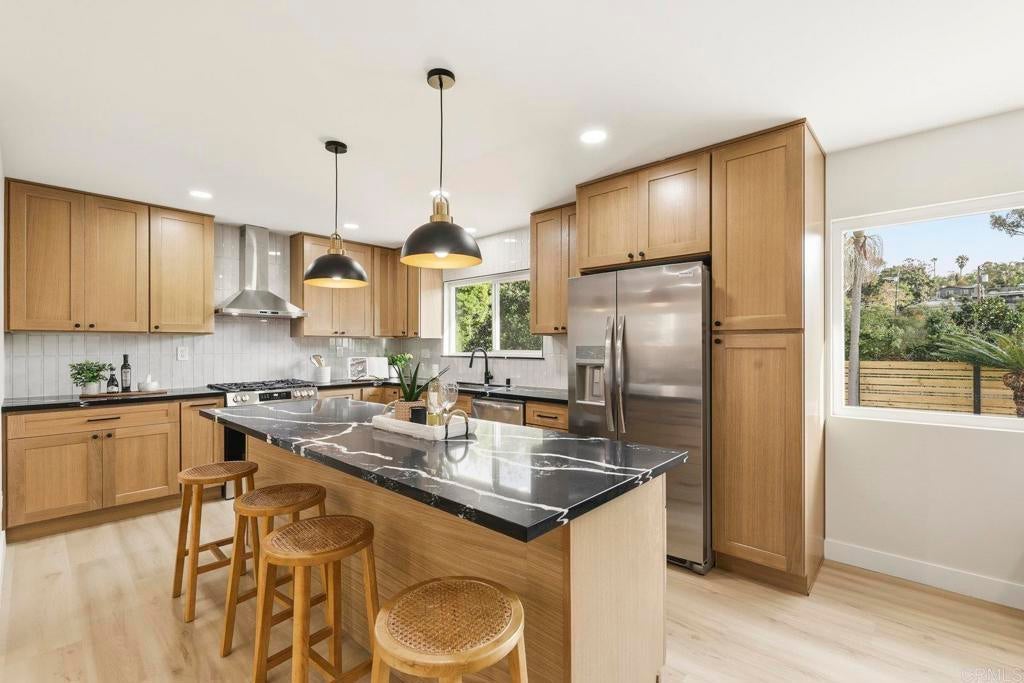 Stunning full renovation meets resort-style outdoor living in this Vista pool home! This stylish single-family residence has been completely renovated inside and out, offering modern design, quality craftsmanship, and a private pool perfect for Southern California living. Step inside to an open and airy layout refreshed with smooth walls, all-new interior paint, new shaker-style doors, modern baseboards, new windows throughout, and luxury vinyl plank flooring throughout every living space and bedroom. The kitchen has been fully rebuilt with new cabinetry, a spacious center island, new plumbing and electrical, a gorgeous waterfall-edge countertop, brand-new appliances, a custom tile backsplash, and thoughtfully relocated utilities to maximize function and flow. Every bathroom has been entirely transformed with new vanities, tile floors, tiled shower walls, modern fixtures, and improved layouts. The entire upstairs is dedicated to a private primary retreat, featuring a spacious walk-in closet, a fully remodeled bathroom with modern finishes, and a serene balcony that offers the perfect place to unwind. Outside, the home features a brand-new charcoal roof, full exterior repaint, refreshed landscaping, new fencing and gates, a refinished pergola, and a sparkling private pool. The property also offers covered RV parking and additional backyard space on the opposite side of the home, ideal for storage, play or expansion of your outdoor living. Conveniently located near Vista’s dining, shops, and parks, this fully renovated home delivers modern upgrades, elevated design, and relaxed California living.