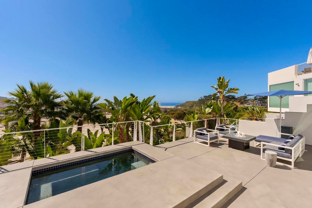 Watch the waves. See the finish line. Set above the sand and the track, this gated Del Mar residence offers nearly 4,000 square feet of living space, panoramic whitewater ocean views, and a unique vantage point of the Del Mar horse races. Fully remodeled with modern coastal vibes, the home works perfectly as a full-time residence or a lock-and-leave retreat. The main level’s great room combines expansive ceilings, oversized viewing windows, and a bar just off the living area—ideal for entertaining. Glass panels open to an ocean-facing patio with uninterrupted views of the Pacific, the Del Mar Beach Colony, and the Del Mar Race Track. Four bedrooms are arranged for privacy, including a top-floor primary retreat with sweeping vistas and a freestanding soaking tub. Additional features include a 600-bottle wine wall, Labradorite countertops that shift color with the light, a spa, and a two-car garage. On race days, the energy of the finish line carries across the track. Step outside and you’re next door to The Brigantine, minutes from Del Mar Dog Beach, and directly across from the shops and galleries of Cedros Avenue. Offered for purchase and for lease, fully furnished and turnkey.
