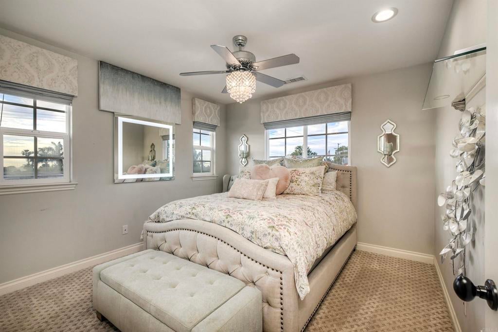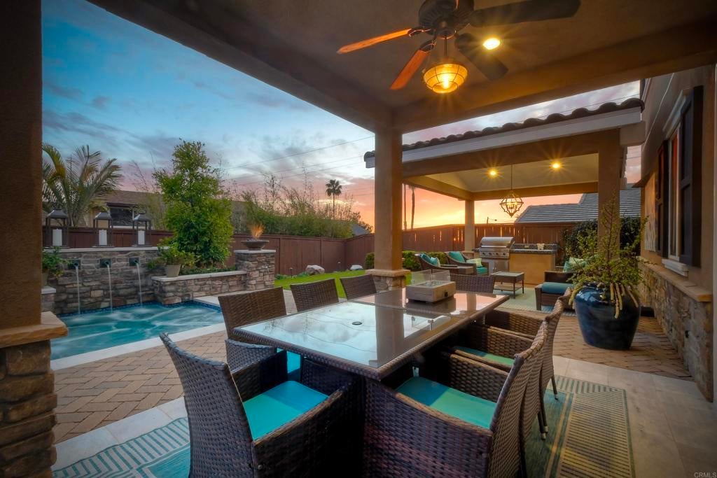 Coastal Sophistication Meets Sunset Ocean Views. Welcome to your private sanctuary within Cardiff-by-the-Sea. Located within the exclusive six-home enclave of Windsor Estates (completed in 2017), this coastal masterpiece perfectly blends high-end construction with an unmatched outdoor lifestyle. The Living Space - Open- concept floor plan is bathed in natural light, featuring 4 bedrooms and 3.5 baths and nearly 2,300 square feet of living space. Guests or multigenerational families will appreciate the entry-level bedroom suite, while the upper-level secondary living room offers a versatile space for relaxation or play. The primary suite is complete with walk-in closet and a stunning view deck that captures expansive views of the coastline. Outdoor Oasis - The current owner has transformed the exterior into a world-class retreat. The Pavilion - A covered outdoor grilling area and vaulted ceiling with recessed lighting and ample seating. The Spool - An elegant, oversized spa/pool with tranquil water feature. The Ambiance - Exterior lighting, fire basins and stone pavers create a sophisticated evening glow. The View - A dedicated seating area with linear fireplace perfectly frames direct views of the Pacific Ocean. Complete with mature, low-maintenance landscaping, this home offers the ultimate in coastal luxury lifestyle.