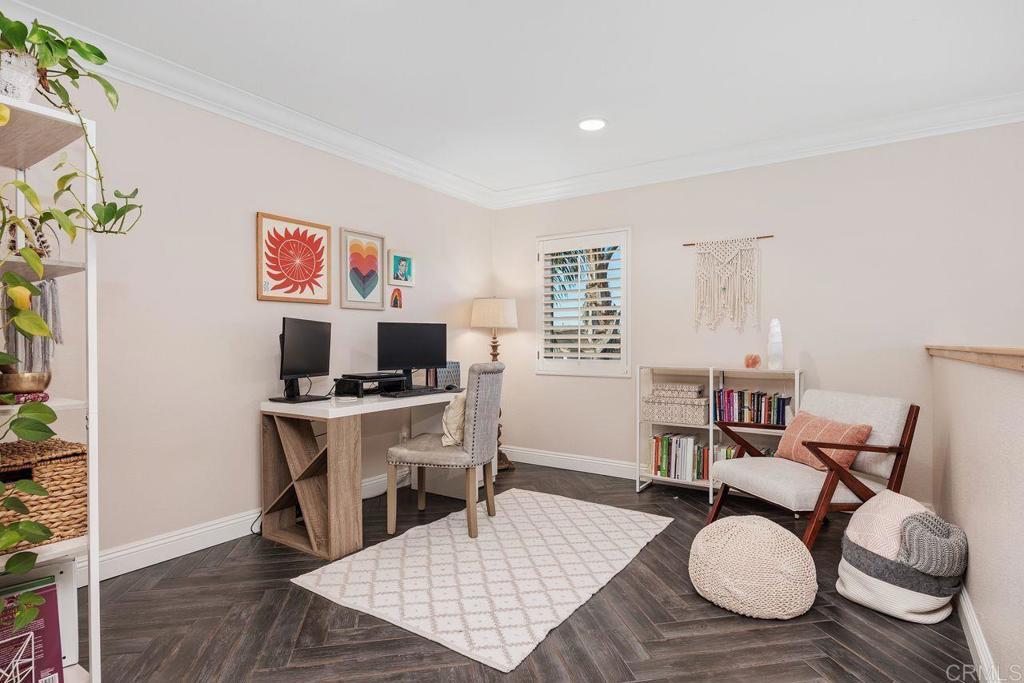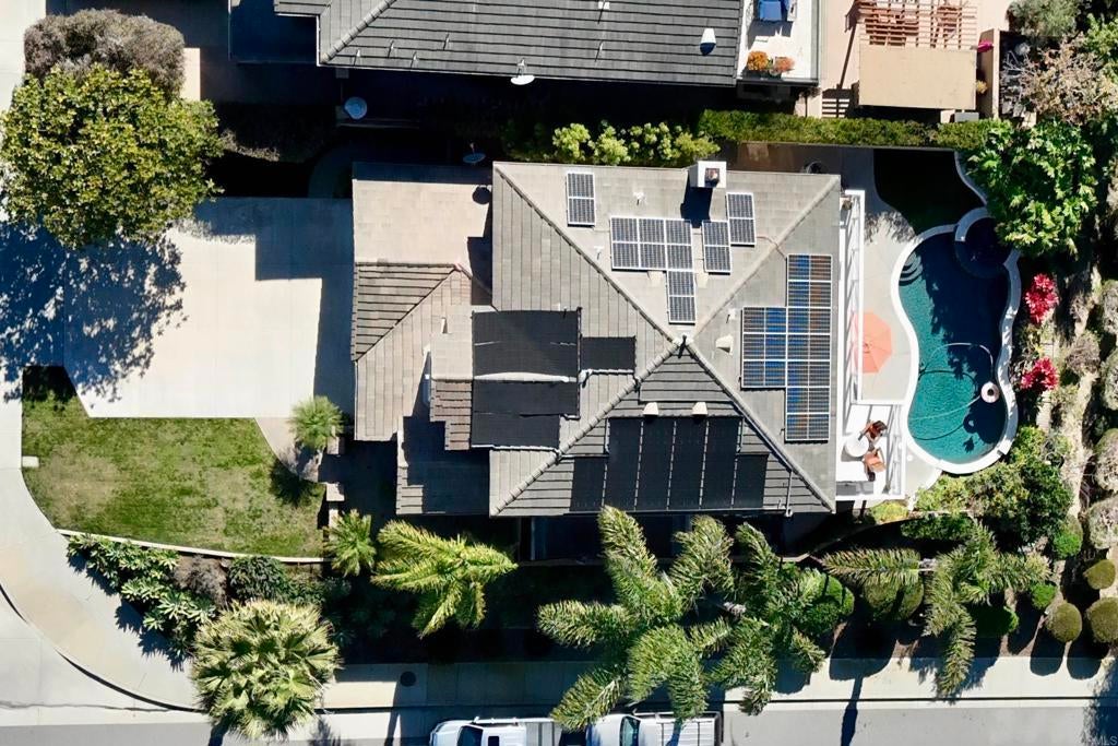 Located in the highly desirable Mariner’s Point, this ocean and sunset view home offers the ideal blend of comfort, functionality, and indoor outdoor living. Situated on a corner lot on an interior street, the property features five bedrooms, three bathrooms, and a spacious loft. The main level includes a full bedroom and bathroom, perfect for guests, an office or multigenerational living. Accordion sliding doors from the dining room open directly to the entertainers backyard, creating a seamless transition to the outdoor living space. The backyard is designed for enjoyment with a beautiful pool and spa, outdoor barbecue area, fruit trees, and multiple areas to relax and entertain, including a view deck accessed by a spiral staircase. The upper level includes a large primary suite with beautiful ocean views, an en suite bathroom with dual sinks, and two walk in closets. Additional architectural details include a dramatic curved staircase, vaulted ceilings, wood floors, and oversized crown moldings and baseboards. Practical features include owned solar for both the home and pool, air conditioning, and a three car garage with a long driveway. The location is exceptional, just one block from Pacific Rim Elementary and close to Poinsettia Sports Park, shopping, dining, golf courses, beaches and coastal Carlsbad amenities.
