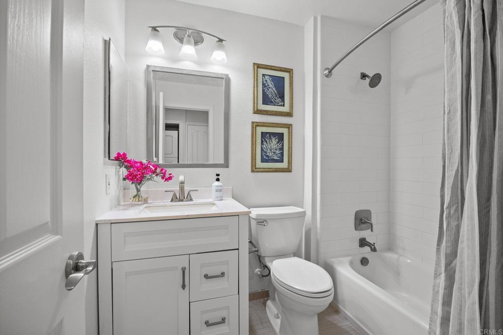 Beautifully updated 2-bedroom, 2-bath first-level unit in a gated community just minutes from the beach. The home features new luxury vinyl plank flooring throughout, updated bathrooms, a new refrigerator, a wood-burning fireplace, and an in-unit washer and dryer. Enjoy a private fenced patio with additional storage—perfect for indoor-outdoor living. The unit includes a dedicated carport, with convenient on-site electric vehicle charging stations available within the community. Ideally located near the pool, spa, fitness center, and clubhouse, the community offers a relaxed, resort-like setting without the maintenance, along with tennis and racquetball courts for an active coastal lifestyle.