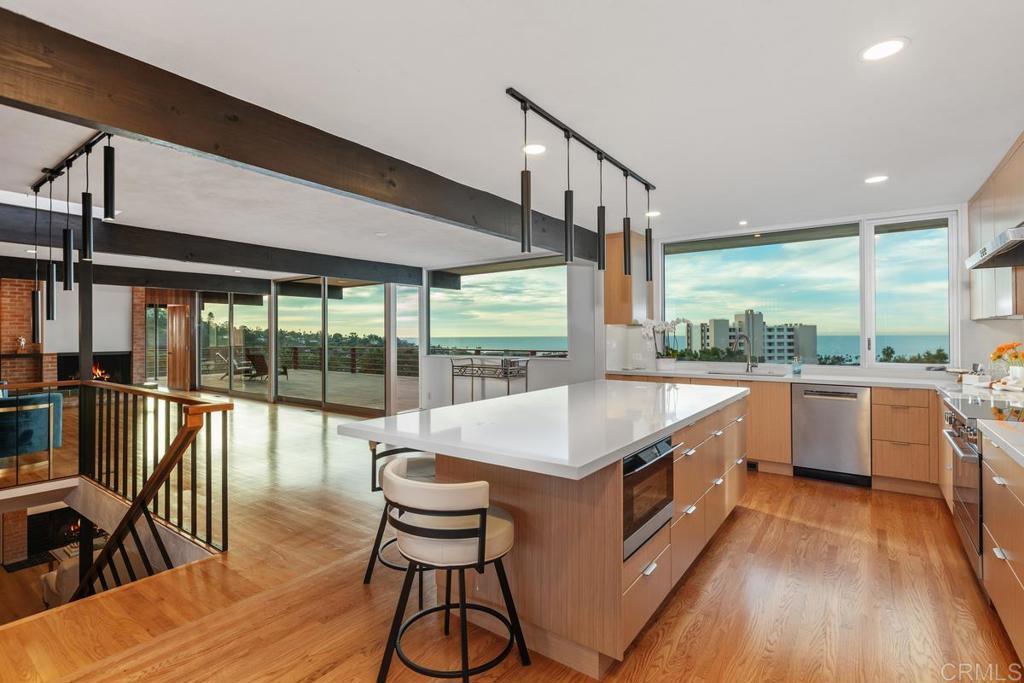 An Architectural Mid-Century Modern Masterpiece with Commanding OCEAN VIEWS! Perched high above La Jolla Shores on an extraordinary 24,000-square-foot panoramic lot, this rare mid-century modern estate captures breathtaking, uninterrupted views of the Pacific Ocean. A true architectural gem, the home blends timeless design w/resort-style living in one of La Jolla’s most coveted settings. Thoughtfully designed, the residence offers 5 bedrooms, 5.5baths, including a serene primary suite with sitting area & heated wood floors. Expansive living spaces include a private library, a generous family room, and a billiards lounge featuring a Brunswick Anniversary Edition 8’ pool table and wet bar—ideal for both intimate evenings & sophisticated entertaining. An oversized bonus room provides flexibility as a 6th bedroom, creative studio/craft space. Outdoors, the estate unfolds into a private oasis: a 20’ x 40’ swimming pool, jacuzzi, built-in BBQ, and a separate pool house w/shower, changing room, and sauna—framing the ocean horizon beyond. Additional amenities include dual laundry areas, a four-car garage, solar & beautifully integrated indoor-outdoor flow throughout. Ideally positioned w/seamless access via Torrey Pines Road, the property sits moments from La Jolla Shores Beach, the Village, UCSD, Birch Aquarium, La Jolla Playhouse, Torrey Pines Golf Course & Torrey Pines State Park. A rare offering that combines architectural pedigree, sweeping ocean vistas, & an exceptional La Jolla lifestyle.