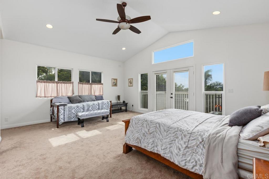 Prime cul-de-sac residence on 11,700 sq ft (0.27 acres) lot with no HOA and strong ADU/expansion potential. Main level: 2 versatile bedrooms + full bath (perfect for guests, office, or multi-gen), updated kitchen opens to dining & living area. Energy-smart upgrades: owned solar, tankless water heater, central vacuum. West-facing w/ ocean & sunset vistas from the upper level, including a walk-out balcony off the oversized primary suite (full upper floor with generous walk-in closet). Expansive & flat backyard, owner-utilized RV parking with hookups, plus expanded garage workshop. Walk to beaches, vibrant Carlsbad Village, dining, and highly acclaimed local schools.