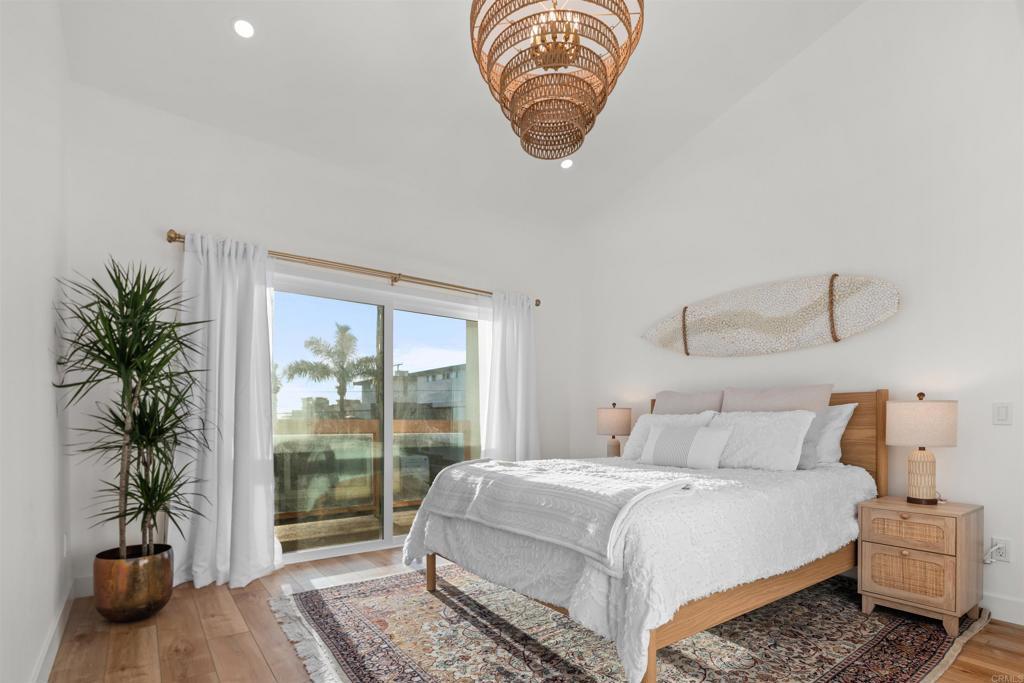 Offered is a fully furnished primary bedroom with a private en-suite bathroom for rent in a shared home, with access to common living areas. This is not a rental of the entire property. The primary bedroom is located within a newly renovated 2-bedroom, 2.5-bath condominium just one block from the beach and a short walk to the iconic pier and amphitheater. This prime location offers the ideal blend of coastal living and everyday convenience. The condo features stunning beach-boho decor, light, airy tones, elegant gold finishes throughout, a fully remodeled kitchen equipped with brand new GE Cafe appliances, and a cozy gas fireplace in the living room. Off the living room, enjoy an additional balcony with a comfortable sitting area perfect for evening breezes or morning coffees. A tranquil back-deck oasis with a fire pit and seating area provides the perfect space for relaxing or enjoying an outdoor meal. Your private bedroom suite comes with its own bathroom, vaulted ceiling, and a serene balcony with a peekaboo ocean view, ideal for morning meditation or unwinding after a long shift. You'll also have private reserved underground parking. All utilities, plus high-speed internet, in unit washer and dryer are included for a seamless, turnkey living experience. This home is especially appealing to responsible business professionals seeking a peaceful, clean, and comfortable retreat. The condo is a block to the train station and a short stroll to vibrant downtown restaurants and shops making it incredibly convenient for commuters and frequent travelers. Looking for a respectful and tidy renter who will appreciate this quiet, stylish, beachside room. Pets are not permitted, and smoking is not allowed in or on the premises.