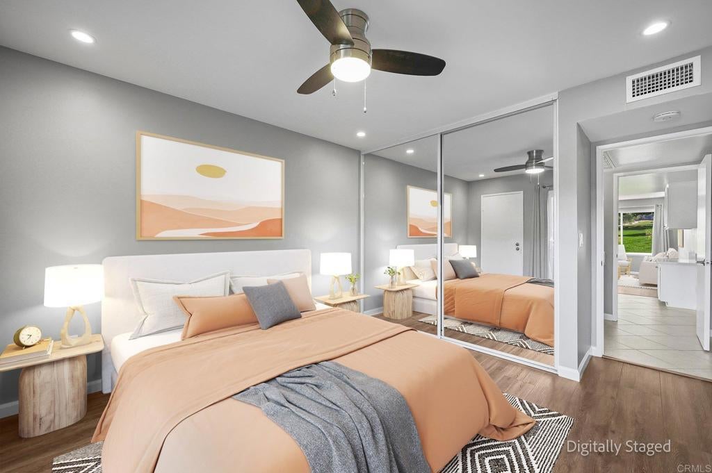 Turn-key, Highly Updated 1 bedroom/1 bath home in North Escondido. Expansive views of the Boulder Oaks Golf Course with lush grounds. This comfortable home features luxury Vinyl plank flooring throughout, upgraded open kitchen with Quartz countertops, bar seating and stainless steel appliances. Dual Pane windows and sliding door, Google Nest Smart Thermostat and newer paint. First floor unit is accessible from patio and front entry. Patios in front and back of the home to enjoy the open views. Assigned parking space by unit and ample overflow parking. Shopping, restaurants and freeway access nearby. Hidden Meadows is a beautiful community with rolling hills, hiking and beautiful views. Use of Hidden Meadows Community Pool and Tennis Courts for $396/year.