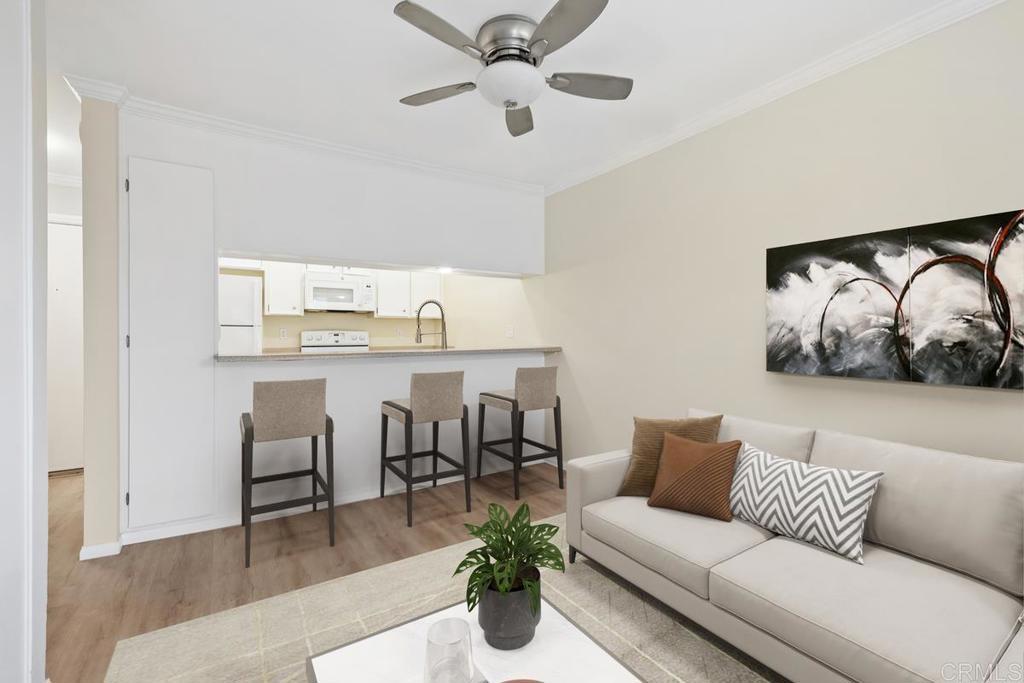 Virtually staged for your imagination. Fantastic central location and Lake View living for $410,000! 2nd floor studio condo in the towers at Lake Park has sit down panoramic views of Lake Murray, Cowels Mountain and Mission Trails Golf Course. Come enjoy the unbelievable sunsets and views from this unit. New HVAC System in 2025. Upgraded light wood laminate flooring in main living space. Fresh light and bright paint, upgraded baseboards and refinished ceiling with gorgeous crown molding. No popcorn ceiling. Refinished tub/shower with new brushed nickel handles and spigot/faucet and shower head. New refrigerator, dishwasher and microwave. Upgraded closet doors with in closet switched lighting. This is a pet friendly lake view neighborhood that has various ponds, a lake and numerous water features throughout, a community laundry room on every floor, car wash, 5 pools, 4 spas, gym with showers, tennis courts, pickleball court, handball/racquetball court, sauna, billiard table, ping pong, a clubhouse with a full kitchen, trash and water paid through HOA, your own deeded parking spot and more. This home is so close to SDSU, Grossmont College, shopping, dining, La Mesa Village, Grossmont Center, Mission Tails, a Golf Course, trolley stations and freeways. A perfect investment/rental unit. Designated areas marked for guest parking. Pets allowed with restrictions. Lake Park complex sits on 24 acres of land. Just a few steps from Lake Murray Trails, fishing, boating and biking. Perfect for the active lifestyle or just sit and enjoy the view! Won’t last long! Easy financing and First Time Buyer programs are available too for those who qualify.