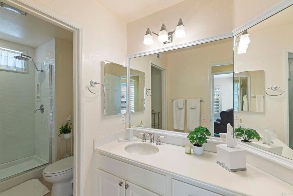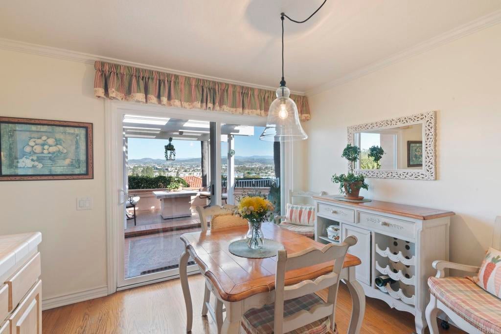 Pride of ownership is apparent from the moment you walk into this home. A bright, open, & spacious kitchen features sliding glass doors that open directly to an elevated wraparound patio with sweeping views of the mountains, lake and neighborhood below. The smart floor plan makes this condo live like a single-family home, boasting 2 generous bedrooms and "fairy tale" garage loft.. Warm wood floors flow through the main living areas. The attached 2-car garage with laundry add everyday convenience. This home is truly move-in ready, while still offering the opportunity to customize to suit your vision. The HOA covers the roof, exterior paint, pest control, front landscaping, & 24-hour security. Enjoy resort-style living in Lake San Marcos with lake access, scenic walking paths, boating, fishing, & a waterfront lodge offering dining, pool, fitness, & year-round social activities.
