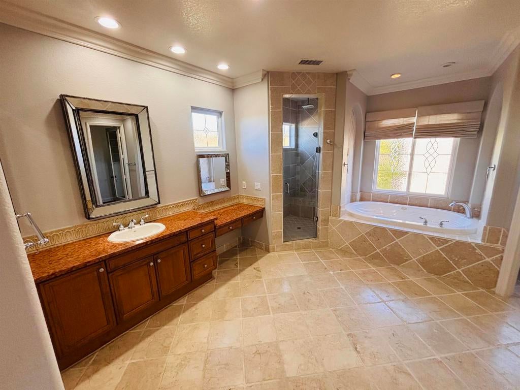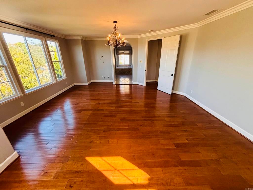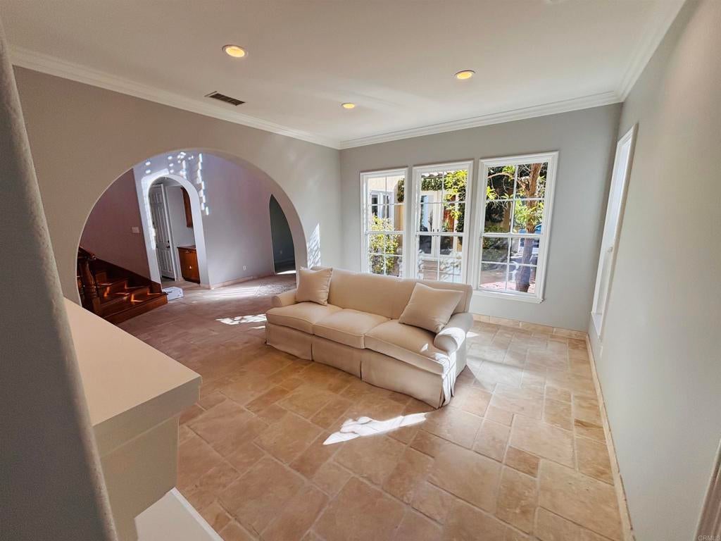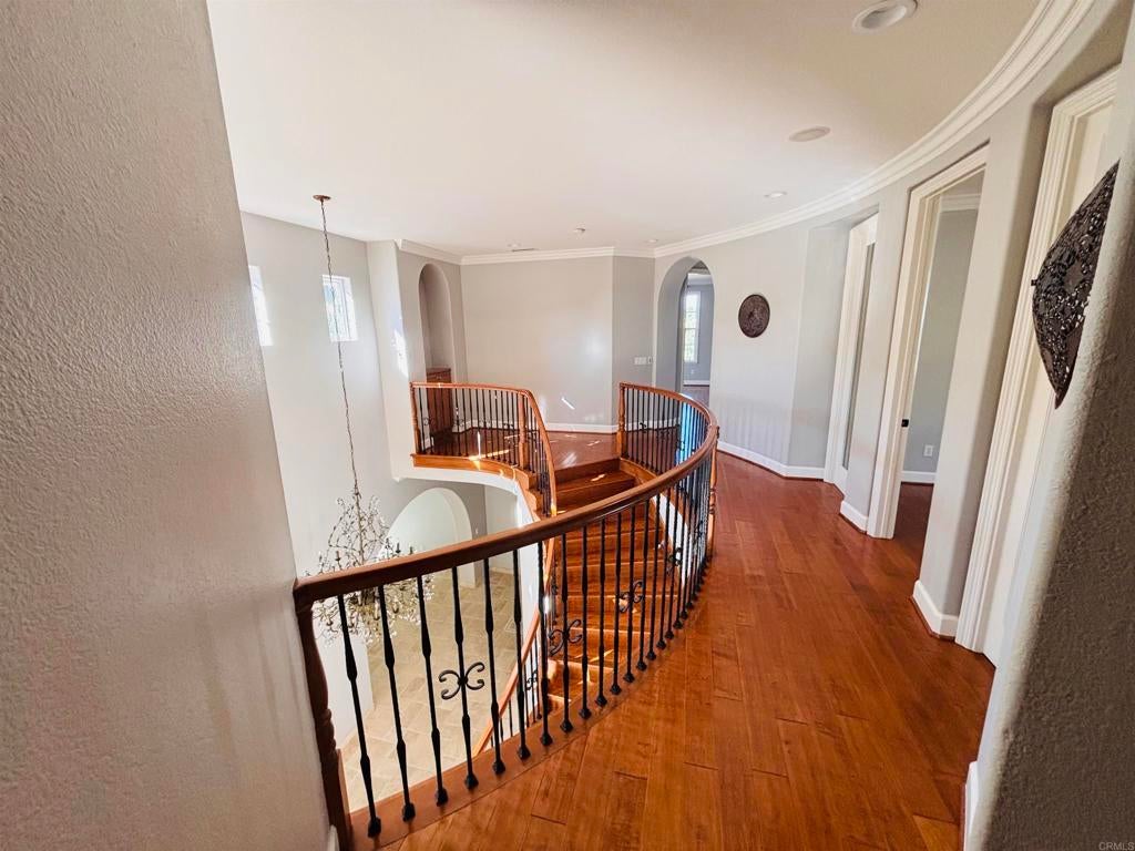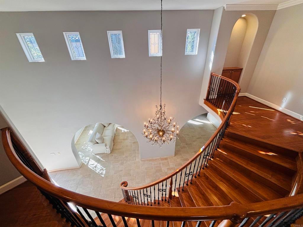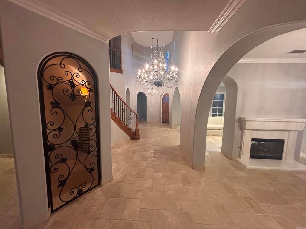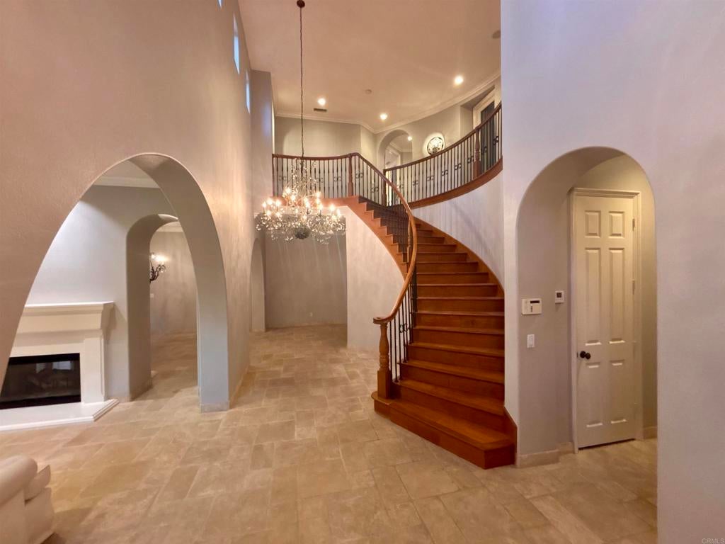 Located in the highly sought-after Carmel Valley community, behind the private gates of Torrey Woods Estates, this exceptional residence offers a rare blend of luxury, privacy, and convenience. Set within a peaceful, almost rural-feeling enclave, the home is just minutes from shopping, major freeways, award-winning schools, parks, and San Diego’s renowned beaches. Spanning approximately 4,579 square feet, the home features five full bedroom suites, each with its own bathroom, plus a dedicated office, six full baths, and an attached private casita—ideal for guests, extended family, or a private retreat. A charming private courtyard welcomes you into the home, setting a tranquil tone from the moment you arrive. Inside, refined details include a wine closet with wrought iron door tucked beneath the staircase and a front-facing office with custom built-ins, thoughtfully positioned away from the main living spaces for maximum privacy. The light-filled living room showcases expansive windows with serene views of the courtyard garden and is anchored by a double-sided fireplace shared with the elegant formal dining room, perfect for entertaining. A butler’s pantry connects the dining room to the gourmet kitchen, which is equipped with stainless steel appliances, a built-in refrigerator, walk-in pantry, informal dining area, and a large center island with vegetable sink—designed for both everyday living and hosting. Adjacent to the kitchen, the family room features its own fireplace and large picture windows overlooking the backyard and lush canyon views, creating a seamless connection to the surrounding natural beauty. Upstairs, the spectacular primary suite is a true sanctuary, highlighted by a stunning ocean view. The spa-like primary bathroom offers his-and-her sinks plus a dedicated vanity, along with a spacious walk-in closet, completing this luxurious retreat. The home is served by some of North County’s most desirable schools, including Oceanaire Elementary School or Torrey Hills Elementary School, Carmel Valley Middle School, Canyon Crest Academy, and Torrey Pines High School. A rare opportunity to own a refined, spacious estate in one of Carmel Valley’s most prestigious gated communities.