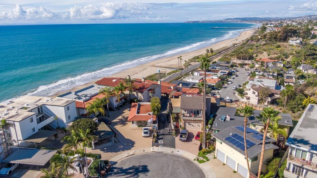 Location, location, location! Perched right over the beach with spectacular, unobstructed views of the Pacific Ocean, Catalina Island and San Clemente Pier, this condominium offers access to Calafia Beach and the San Clemente Pedestrian Beach Trail leading to the Pier, restaurants, shops and more. This generously sized two-bedroom condominium is one of just nine residences within the exclusive Sea Point Villas community. Experience stunning sunsets from the living room, by the fireplace, or from the primary bedroom and bathroom on the upper level. The primary bedroom suite features a lovers' balcony with a gorgeous ocean view, walk-in closet and huge bathroom with double sinks. The second upstairs bedroom includes a bathroom with a walk-in shower and two closets. The open floor plan offers flexibility with two options off the bright kitchen for dining, den or office. Laundry hook-up is conveniently located in the upstairs hallway. A large skylight in the stairwell brings in natural light and two balconies maximize enjoyment of the ocean views and breezes. Behind the gate a spacious two-car garage includes a storage closet and work bench. You must see this condo to appreciate its unique location and features.