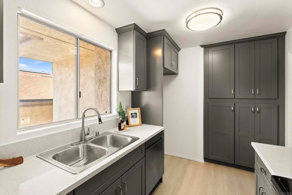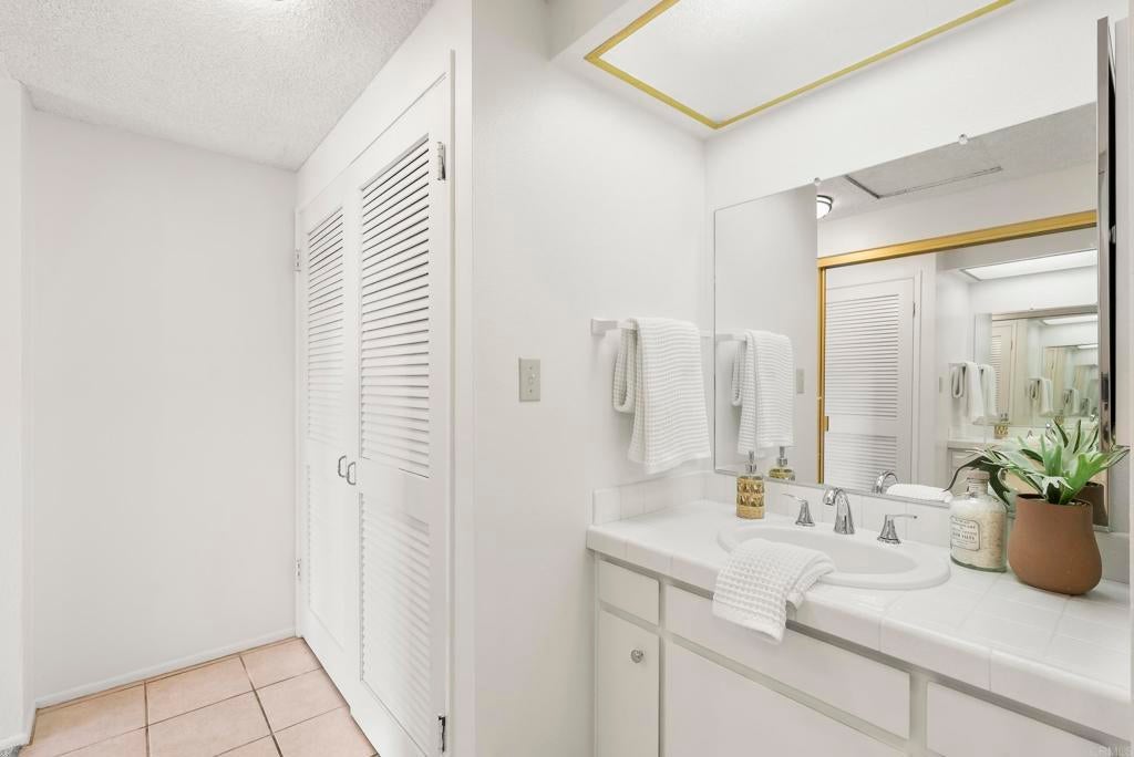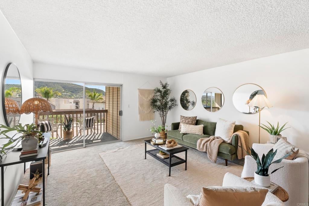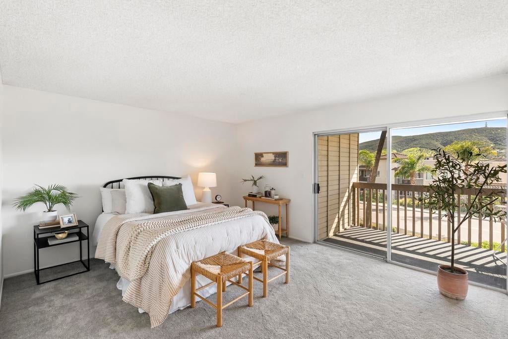Approximately 1,200 square feet of well-designed living space awaits in this two-bedroom, two-bathroom condominium. The spacious layout features an open-concept design that seamlessly integrates the living and dining areas, allowing natural light to flow throughout. The primary bedroom boasts an en-suite bathroom, while the secondary bedroom also has its own private bath. Enjoy the convenience of in-unit laundry and a detached garage with a large storage room. The living space is brightened by the home's generous windows, including two large sliding glass doors that provide access to the spacious balcony. The balcony offers scenic views, creating an ideal setting for relaxation or al fresco dining. The kitchen has been updated with new cabinets and countertops, complementing the new flooring. The covered entryway and vibrant neighborhood setting add to the appeal of this condominium, which is conveniently located in close proximity to the nearby lake. The combination of a spacious layout, thoughtful updates, and desirable amenities make this home an ideal choice for those seeking a comfortable and functional living space. The location within Lake San Marcos offers access to shared amenities and common areas, including pool, fishing, golf, boating and kayaking, etc. Be sure to watch the virtual tour