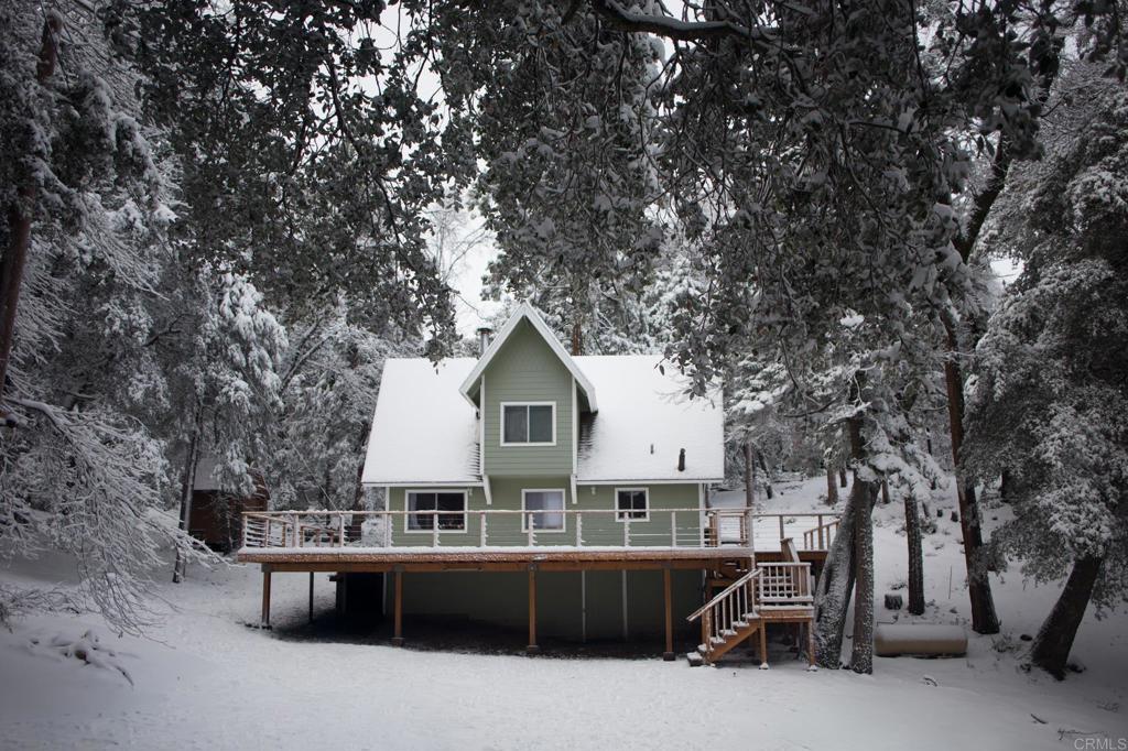 Loved and enjoyed in every season, this newly remodeled mountain cabin offers authentic comfort for both full-time and weekend living. A warm knotty pine interior sets the tone, complemented by new flooring, a highly efficient wood stove with supplemental propane heat, and refreshed bathrooms featuring acacia countertops. The flexible layout provides three to four bedrooms with multiple sleeping options for family and guests. The walk-out basement includes a workshop, along with a 10x12 Tuff Shed and wood shed, offering excellent storage and utility. Year-round, the property functions as a natural playground, with prime sledding hills and established paths suited for snowboarding. In warmer months, those same routes become peaceful hiking trails. Enjoy true mountain living with space, quiet, and changing seasons, all while remaining distinctly Southern Californian. Snow on the property and surfing at the coast on the same day is entirely possible. From the deck, take in direct views toward the iconic dome of Palomar Observatory. Afternoon shutter openings are visible in the distance, and nighttime brings dark skies ideal for stargazing. This is not a staged retreat, but a property that has been genuinely used and appreciated, offering privacy, natural beauty, and a meaningful connection to land and sky.