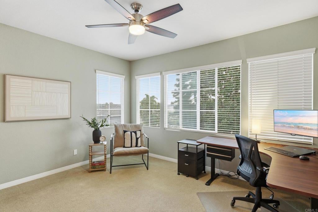 This is not your cookie-cutter Carmel Valley home. In a market where many homes have a homogeneously designed interiors, this residence sited on a quiet double cul de sac near Ashley Falls Elementary, this 5 bedroom, 5.5 bath home showcases design choices that exude warmth, functionality and comfort. Positioned on a large elevated corner lot, the home offers a peaceful outdoor setting with multiple sitting areas, raised garden beds, and lush landscaping. Here the days are bookended by stunning sunrises and sunsets. Inside, a Marrokal designed gourmet kitchen anchors the home complete with breakfast area and adjacent family room complete with built in bookcases, a wall of windows and a stone fireplace. The architectural elements of high, voluminous ceilings in the living room flow effortlessly into an intimate dining room with views to the tranquil garden area. Upstairs the spacious primary retreat features a custom spa bath and ample walk-in closets. Every additional bedroom is ensuite, including a main level bedroom and bath, and a versatile loft area provides additional space for a home office, studio, or game room. Located near top ranked schools, premier shopping, and just minutes from the coast, this residence is as refined as it is livable.