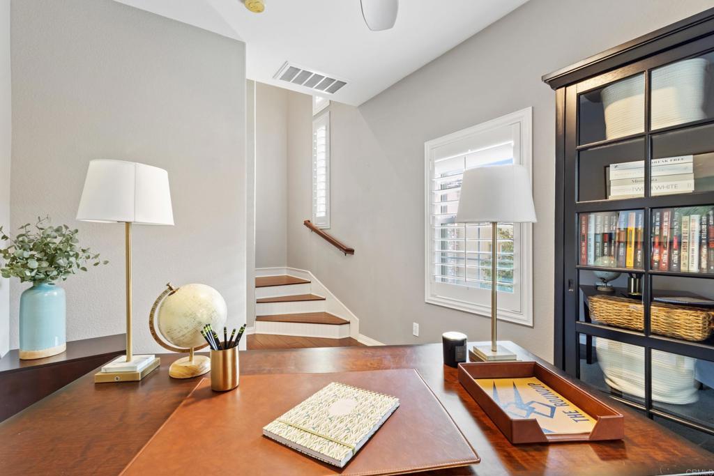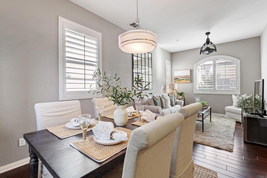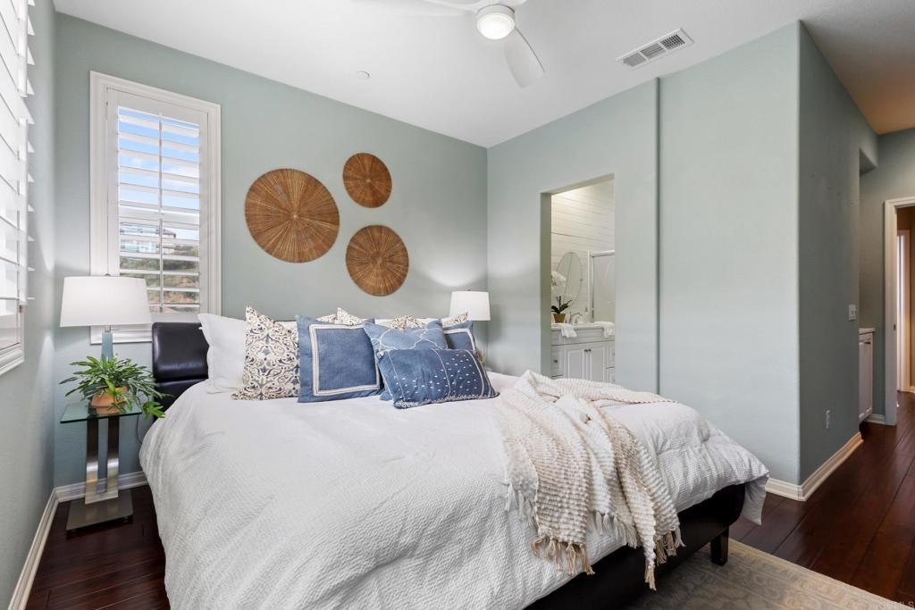 Welcome to 1567 Chert Dr, a stunning home tucked away in the picturesque, gated community of Belmont in San Elijo Hills. This DETACHED townhome masterfully blends modern style and everyday comfort, creating the perfect haven for those seeking the best of North County living. With 3 bedrooms, 2.5 bathrooms, a versatile bonus room, and almost 1500 square feet of thoughtfully designed space, this property is a true gem. Step inside and feel instantly at home in the light-filled, open-concept living area. The heart of the home—the kitchen—boasts sleek granite countertops, stainless steel appliances, and an oversized island ideal for everything from casual breakfasts to entertaining guests. Upstairs, a flexible bonus room awaits, ready to serve as your home office, playroom, or cozy den. Retreat to the serene primary suite, where you'll find a spacious walk-in closet and a spa-like bathroom featuring dual sinks, a shiplap-accented wall, and modern finishes. Outside, the private patio backyard offers a peaceful escape with low-maintenance landscaping—a perfect spot to sip your morning coffee or unwind after a busy day. Additional highlights include luxurious wood floors, plantation shutters, ample storage throughout, whole house fan, and an oversized two-car garage with an epoxy floor and extra storage area. Situated in the vibrant San Elijo Hills community, this home provides access to top-rated schools, scenic parks, and miles of hiking and biking trails. Plus, you're just moments from charming local dining, shopping, and convenient freeway access.