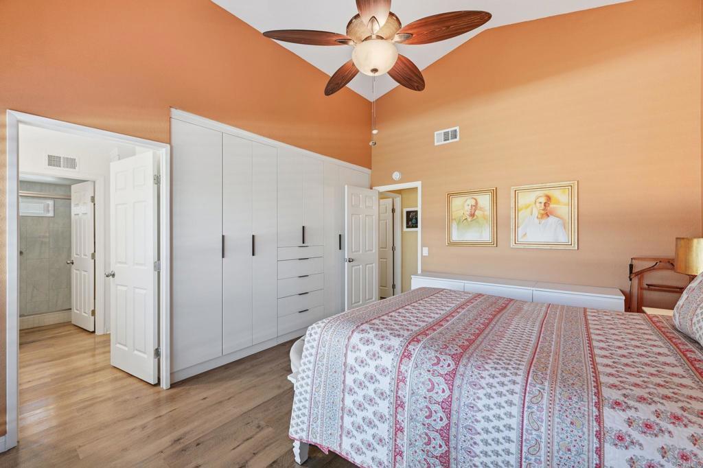 Discover this beautifully reimagined, single-level residence designed with entertaining in mind, located in the highly sought-after Rancho Santa Fe Vista community of Encinitas. The custom kitchen showcases handcrafted solid wood cabinetry, quartzite countertops, and top-tier Thermador and Fisher & Paykel appliances, all seamlessly opening to an upgraded outdoor living and entertaining area. Experience the best of North County coastal living with elevated outlooks, a built-in recessed entertainment feature, private putting green, easy-care landscaping, and newly refreshed exterior paint. Inside, the home offers a dedicated office, brand-new Milgard windows throughout, statement custom iron entry doors, and a thoughtfully designed primary suite storage system by California Closets. Ideally positioned within walking distance to Olivenhain Pioneer Elementary, Diegueno Middle School, and Sun Vista Park, and just minutes from the beach and the vibrant shops, dining, and lifestyle along Highway 101. Move-in ready and meticulously upgraded — a standout opportunity ready to be enjoyed.