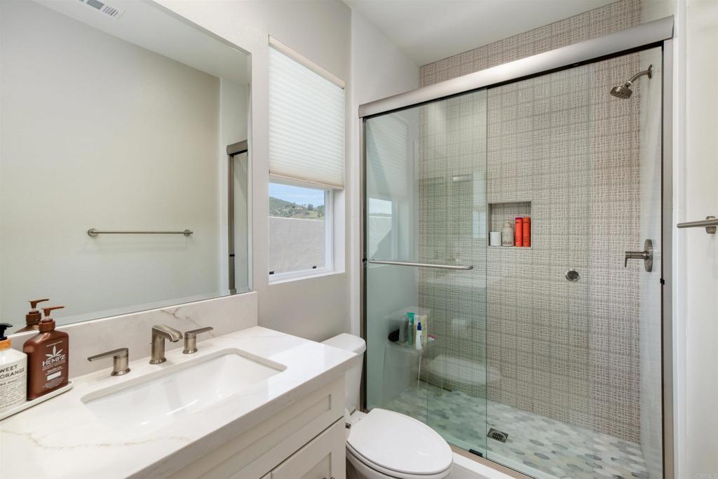 Tucked away at the end of a quiet cul-de-sac, 998 Woodhaven is a stunning former model home, built in 2024, offering exceptional privacy, elevated design, and seamless indoor–outdoor living. Positioned as the last home on the street with no neighbors on one side, this residence delivers a rare sense of space and tranquility. Featuring over $170,000 in builder upgrades, the home showcases thoughtful craftsmanship and high-end finishes throughout. The chef’s kitchen is a true centerpiece, equipped with a built-in Sub-Zero refrigerator, WOLF six-burner gas range, WOLF microwave and hood, Sub-Zero undercounter wine refrigerator, COVE dishwasher, soft-close cabinetry, and premium materials. Marble countertops in the laundry room and bathrooms, upgraded tile and wall finishes, enhanced bathroom fixtures, upgraded wardrobe doors, and LED recessed lighting throughout further elevate the home’s design. A striking maple stair rail system adds warmth and architectural detail. Designed for flexibility, the home includes a first-floor bedroom with en-suite bath, ideal for guests, extended family, or a private home office. Upstairs, a spacious bonus/loft area provides additional living, work, or media space. Throughout the home, thoughtful design and natural flow create an exceptional living experience. Oversized sliding glass doors extend the living space outdoors, opening to a beautifully designed, low-maintenance backyard—perfect for entertaining, relaxing, and enjoying sweeping mountain views and brilliant night skies. Set in a highly desirable San Marcos location, the home offers incredible access to hiking and outdoor recreation, with scenic trails just moments away. Located within a highly regarded school district and close to shopping, dining, Kaiser, and the continued growth of downtown San Marcos, this property offers the ideal balance of nature, convenience, and community. A rare opportunity to own one of the most upgraded, private, and thoughtfully designed homes in the community.