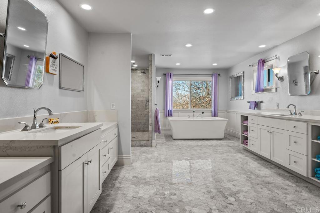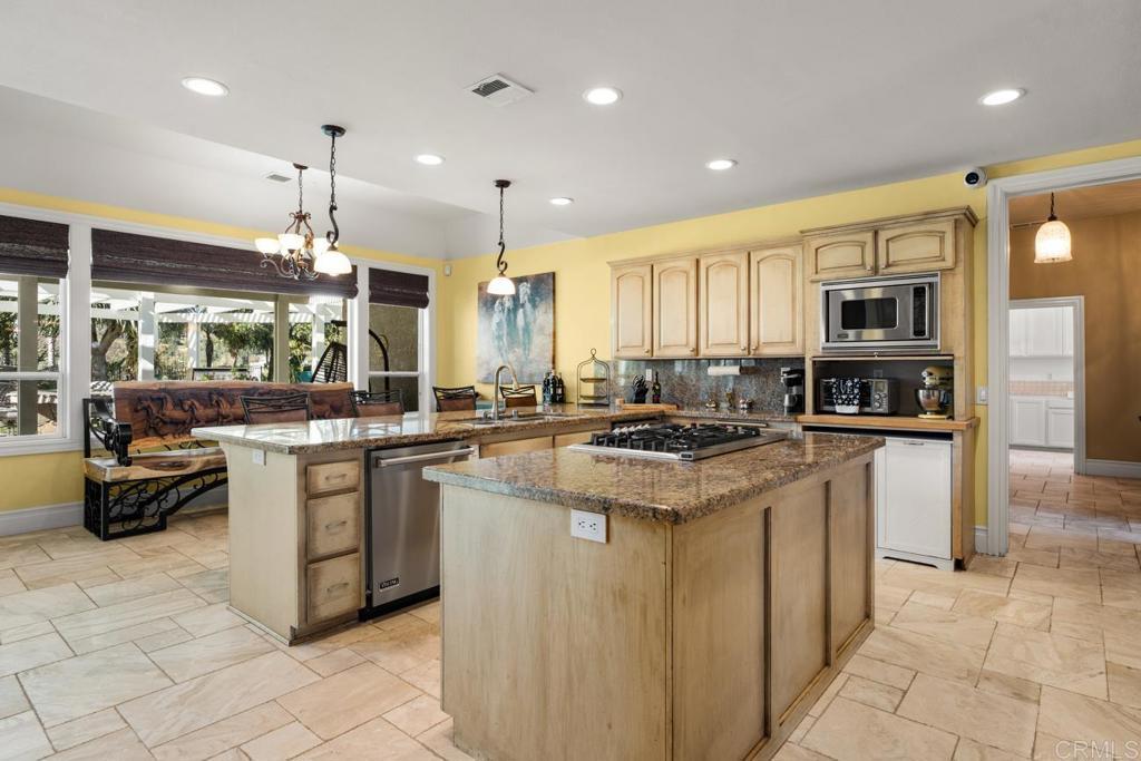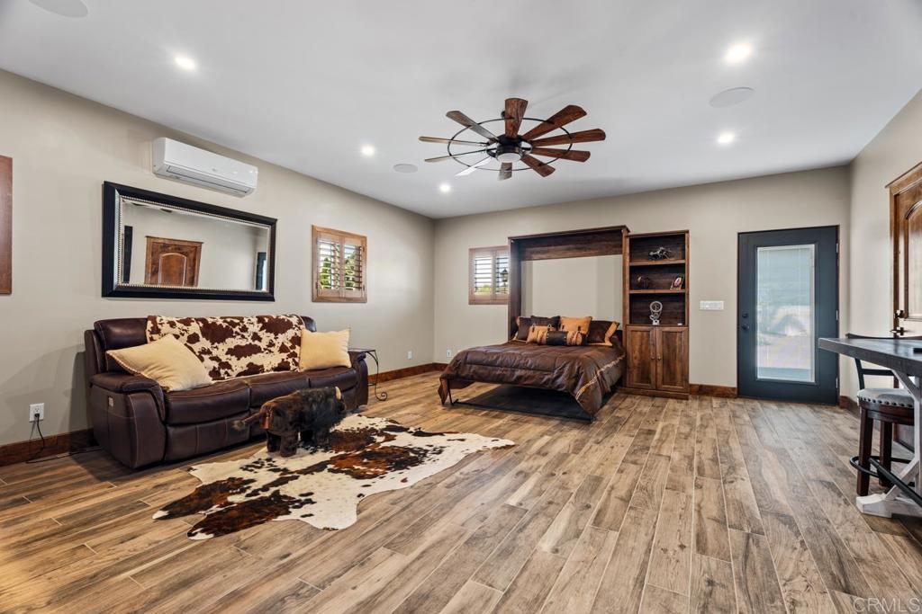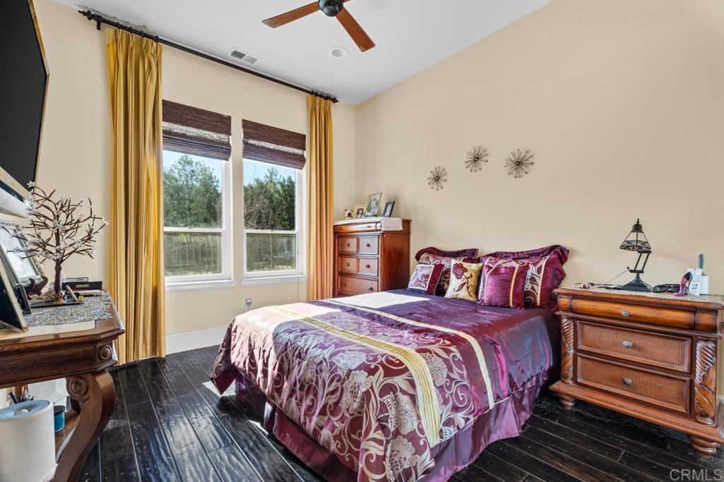 10 Acre estate in exclusive La Cresta. HUGE RENTAL INCOME opportunity. Gorgeous views. Secluded and private, with 2 Separate Parcels, This luxury property includes a Principal Residence of 5794 sq ft, on 2 levels with 25' vaulted ceilings and an open air floor plan. Limestone tile floors, aged wood and no carpeting! Heavy insulation makes this energy efficient home warm in winter and cool in the summer. Sliding doors open to a huge backyard with beach walk-in swimming pool. The pool is accompanied by a hot tub adjoined across a waterfall, and an adjacent firepit for cozy evening gatherings. Large outdoor BBQ pavilion and sitting areas, across a grass lawn, rich with palm trees, and plenty of shade for those not willing to brave the direct sun on the pool deck! A craft kitchen includes solid granite countertops, wood cabinets, and a suite of Viking appliances and SubZero commercial sized fridge, with 2 dishwashers for parties and events. A "mud room" full of cabinetry, adjoins the kitchen, garage, and laundry room for convenience, and easy access from the side entry or garage entry. The first floor offers an open-air living room with grand fireplace wall, french doors, kitchen, mud room, guest bath, large laundry room, living room, formal dining room, grand foyer, office with french doors which can be converted to a den or bedroom, AND a full apartment with it's own private entry. The 1000 square foot apartment features a full bath with custom tile floors and tile bath, solid wood flooring, a bedroom, dining area, full kitchen, and living room. Excellent for mother-in-law quarters or a rental opportunity. 2nd level features easy-to-clean laminate flooring, Primary suite including vaulted ceiling, 2 separate full bathrooms: One with bathroom walk-in closet and full shower, other features a giant walk in closet, sitting area, grand tub with separate shower, and private toilet and bidet, 3 sinks. The opposing wing features 2 bedrooms with large closets in each, full bath with dual sinks, and a huge den / playroom, which can easily be converted to a second master suite. This room also features a walk-in closet. The attached garage features cabinetry, and room for 2 cars. There is a detached RV garage spanning 2800 square feet, with 3 car bays and one vaulted RV bay. This fabulous garage is of Steel construction, insulated, custom glass doors, custom fans, mini splits, 6 inch concrete pad,and it's own apartment complete with: Custom cabinets, granite counters, concrete tile floors, custom shutters, custom full bath with granite shower, bidet toilet and urinal, as well as private entry in the bathroom. This garage apartment is also fully loaded with every tech feature imaginable and an amazing built in sound system for a fantastic audio visual experience. The Ultimate 'man cave'. Adjacent to the huge RV garage / apartment is a 'barndominium'. The gorgeous, custom casita is perfect for rental, or family. At approximately 1400 square feet, vaulted ceiling with open beams, this casita offers 2 bedrooms, 2 baths, a custom kitchen with granite counters, 2 entries, french doors off the dining room, and a full laundry room with appliances and full sink and cabinetry. Extremely energy efficient construction with lots of cheerful natural lighting. The property offers perimeter fencing. The main entry has an electric gate, with a swing barn gate at the rear entry, and 3 other swing gate entries around the property as well as a foot gate to the main road. Equestrian area includes 2 large corrals, with 3 enclosed shelters. 3" water lines with fire hose attachments. Flat, sanded area for arena. 2 tack sheds. 2 Seetrains. Add'l features include a new camera system, audio visual cabling in each room. A multi-Zoned sprinkler system with separate shut off valves. ** Information per Seller. Buyer to verify. SELLER TO OBTAIN ACCEPTABLE REPLACEMENT PROPERTY (Identified).