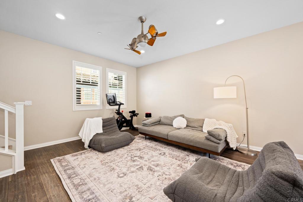 This unit represents one of the BEST values in 92127! Veridian is a prestigious gated community in the heart of 4S and Del Sur! This stunning 3-story townhome boasts 2 spacious bedrooms, 2.5 bathrooms, and a practical stackable laundry closet conveniently located on the bedroom level. Inside, you'll enjoy the warmth of wood flooring in the main living areas, complemented by plush carpet in the bedrooms. Step outside to your private balcony, where you can soak up the sunshine and take in the fresh air. The 2-car garage provides ample parking, and the charming front patio offers a quiet spot to relax. Veridian offers a resort-style lifestyle, complete with a sparkling swimming pool, dog parks, and the peace of mind that comes with a secured gated community. Top-rated school district, and everyone will appreciate the convenience of walking to Del Sur's vibrant shopping, parks, and walking trails. Don't miss your chance to own a piece of paradise in Veridian. Schedule a showing today!