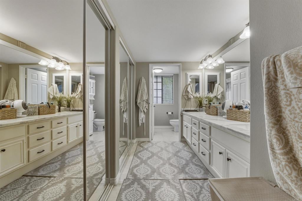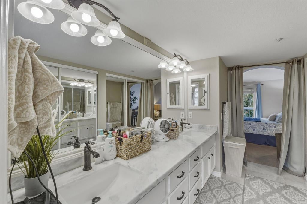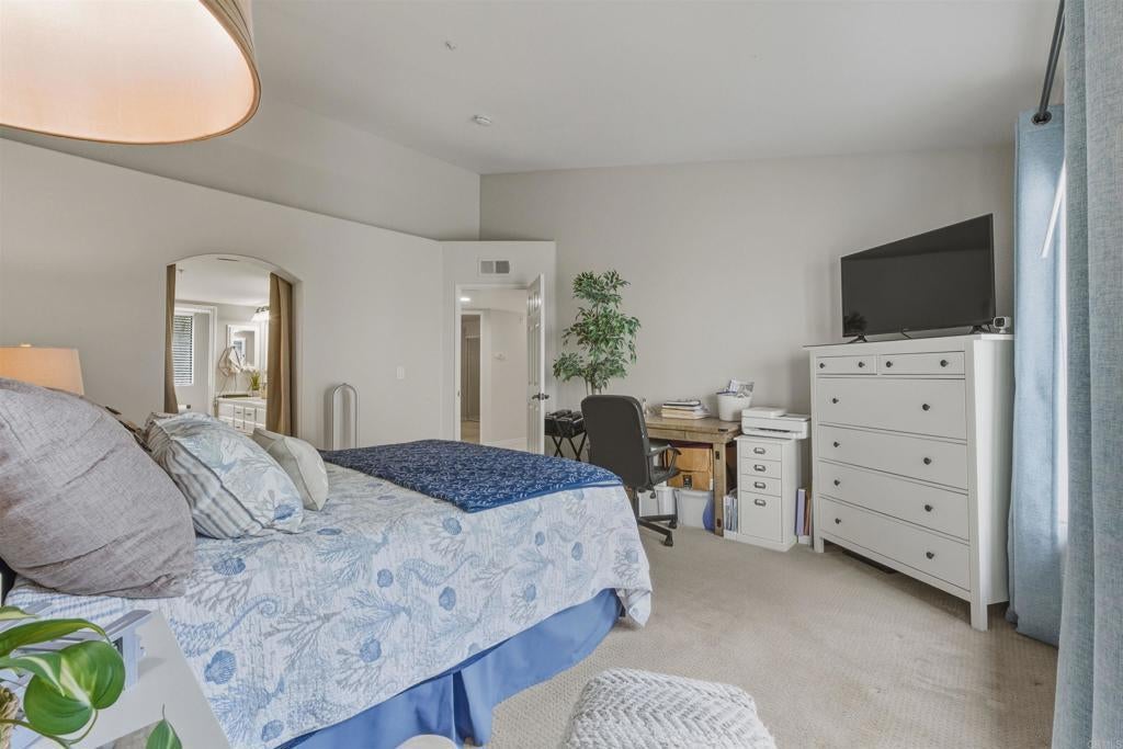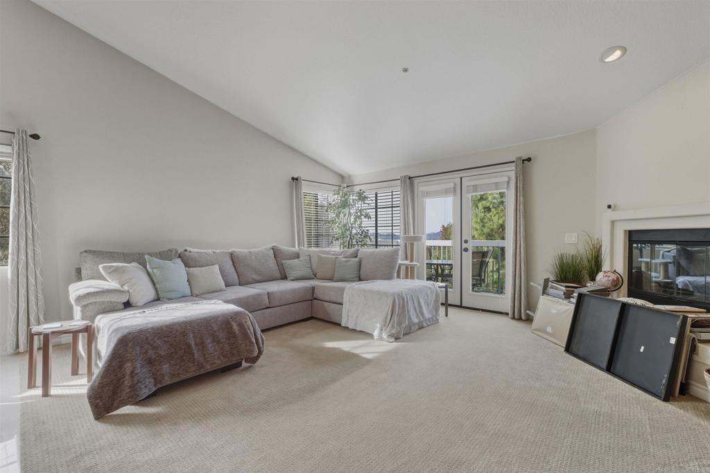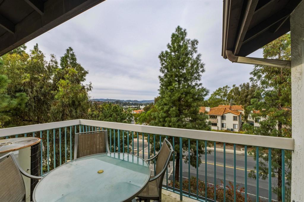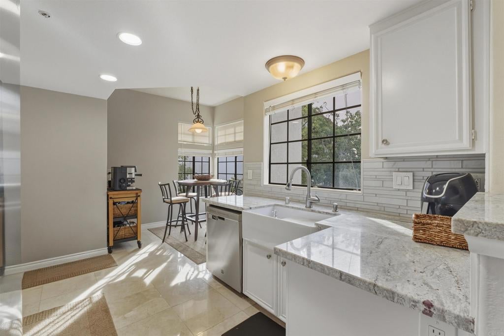 Experience penthouse living in the highly desirable Mira La Paz community, a resort-style enclave nestled in the heart of Bernardo Heights. This rare, top-level, single-story corner residence offers exceptional privacy with no common walls and sweeping views of the surrounding mountains and rolling hills. From the moment you step through the front door, you’re welcomed by a bright, open floor plan filled with natural light from expansive windows. The polished travertine entry leads into a spacious living room featuring a cozy gas fireplace and direct access to a private patio — perfect for relaxing or entertaining. Recently renovated, this stunning 3-bedroom home showcases fresh interior paint, plush carpet, beautiful marble and travertine flooring, updated lighting, and a striking new chandelier over the dining area. The upgraded galley-style kitchen is both stylish and functional, boasting granite countertops, refinished wood cabinetry, a tile backsplash, and Kenmore Elite appliances, including a double oven with gas cooktop. A charming breakfast nook provides the perfect spot to start your day. Storage is abundant, with generous hallway cabinetry and a stacked washer and dryer closet. The hall bathroom has been tastefully updated with a new vanity, light fixtures, shower door, and plumbing fixtures. Two guest bedrooms feature mirrored closet doors and inviting window seats. The spacious primary suite offers private access to a second patio, dual mirrored closets, and an upgraded en-suite bathroom complete with dual vanities, travertine flooring, new shower doors, and updated lighting and fixtures. Additional highlights include a two-car detached garage and access to outstanding community amenities. The HOA covers cable, water, trash, and exterior maintenance, and includes membership to the Bernardo Heights Community Association with access to Paseo Lucido Park, offering pools, tennis courts, a recreation room, and more. Mira La Paz residents also enjoy an on-site pool and fitness center. Located within the award-winning Poway Unified School District, this exceptional home combines comfort, style, and convenience in one of North County’s most sought-after communities. Welcome home.