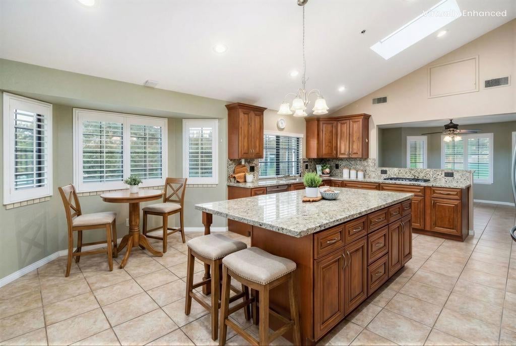 Owned solar, panoramic views, and nearly an acre of space! Welcome to 1567 Monte Vista — a sprawling single-story home offers exceptional privacy, versatility, and sweeping vistas. From the expansive view deck, enjoy breathtaking panoramic views and unforgettable sunsets that make this property feel like a private hillside retreat. The generous hillside lot provides room to spread out and enjoy — complete with space for RV parking and beautifully diverse landscaping that bursts with color in the spring. From multiple vantage points, the home feels like a private escape above it all. Inside, high ceilings and an open, airy layout create a spacious feel throughout. The impressive kitchen serves as the heart of the home, anchored by a massive center island that’s perfect for entertaining or a home chef’s dream workspace. Built-in double ovens, a gas burner cooktop, a Bosch dishwasher, and sleek stainless steel appliances offer both function and style. Recent upgrades include custom shutters throughout most rooms and a beautifully remodeled primary bathroom. Energy efficiency is another standout feature, with fully owned solar (just 3½ years old) and battery storage for electricity generation, backup capability, and potential EV charging in the garage. The home also features a spacious 3-car garage, offering ample room for vehicles, storage, or hobbies. The backyard is designed for making memories. The sparkling pool — replastered approximately four years ago — features a slide and water feature that adds fun for all ages. A remodeled outdoor kitchen with new palapa-style roofing creates the perfect setting for gatherings, weekend barbecues, and sunset evenings under the open sky. With nearly an acre of land, panoramic views, a sprawling single-story layout, and space to truly make it your own, 1567 Monte Vista offers a rare opportunity to enjoy room to breathe in a stunning hillside setting.