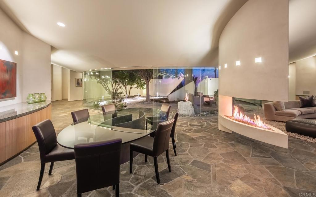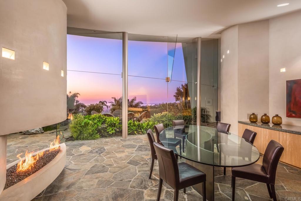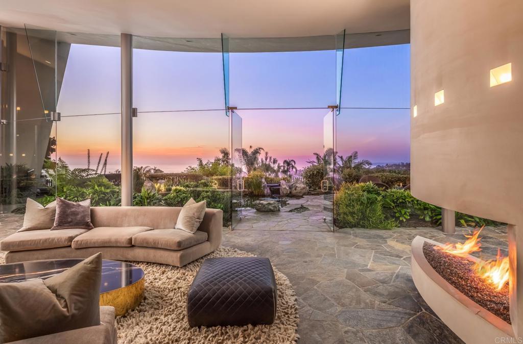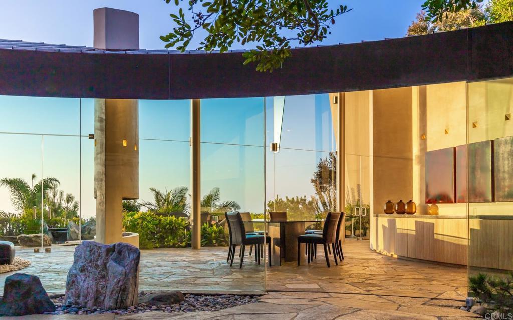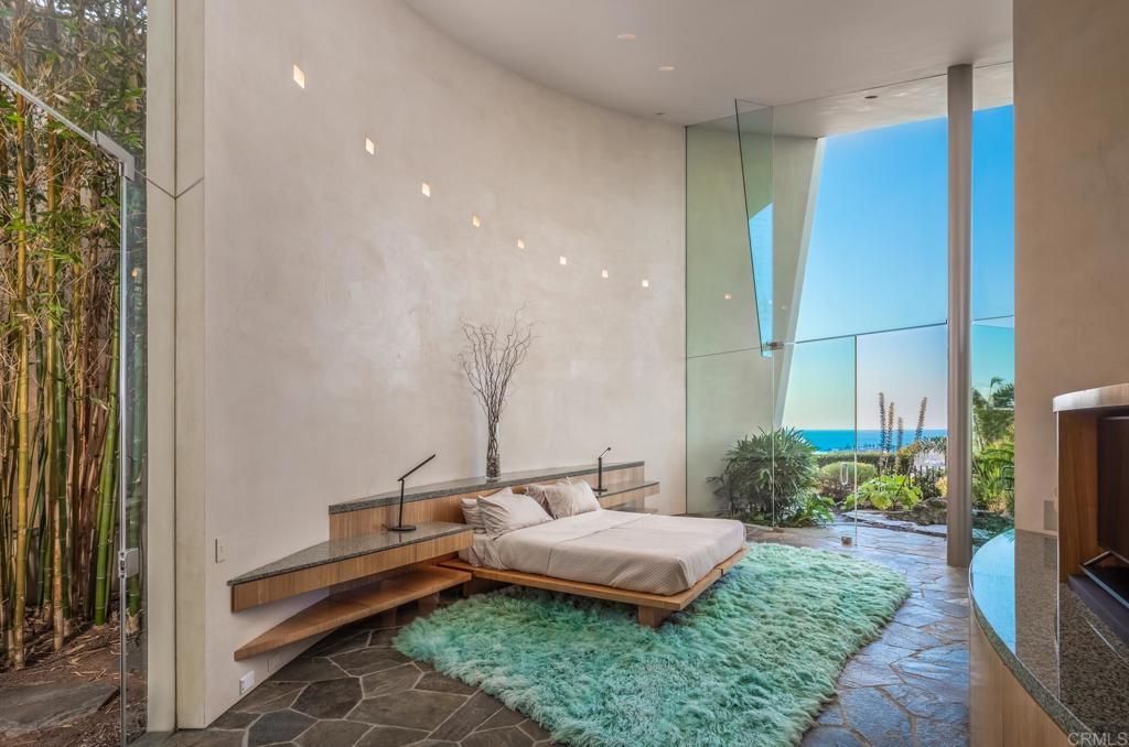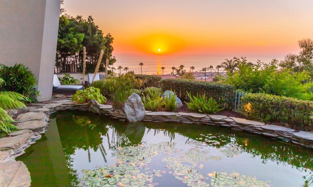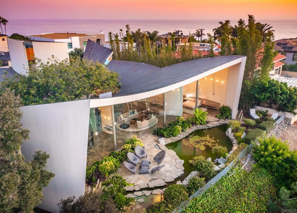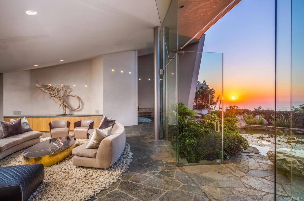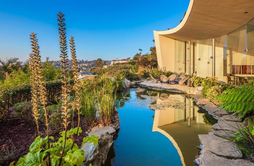 Available March 5! Superior Bold and Dynamic Contemporary Masterpiece. This unique distinctive free form structure rests upon the lush hillside within La Jolla framed byCoastal Vistas. Tucked away in a quiet Cul De Sac. Expansive single level approx 4,900 SF home, 3 bedroom, 3.5 baths with office, artist/loft/home theatre. 20 Foot floor to ceiling towering glass walls are both artistic and functional and act as a framing device for the unique structure itself. Fully enclosed private courtyard with protected glass walls, seamless indoor and outdoor living spaces open to expansive Coastal Vistas. Every custom detail is part of the whole 'LIVING IN ART" experience. Open Living/Great Room/Dining Room accented by crushed glass free form fire feature. MainSuite with disappearing doors and wall panels. Spiral staircase leads to artist retreat/theatre. Custom inset cabinets blend seamlessly into walls throughout. Gallery custom Kitchen with rough stone flooring and granite countertops. Backyard is completed by babbling water brook, tropical koi pond and natural canopy trees. Fully Furnished Luxury Long Term Rental. This barrier free design captures coastal views, downtown La Jolla, and theGolf Course. Stylish, Ultra Contemporary, Luxury Private Estate that connects to its natural surroundings.