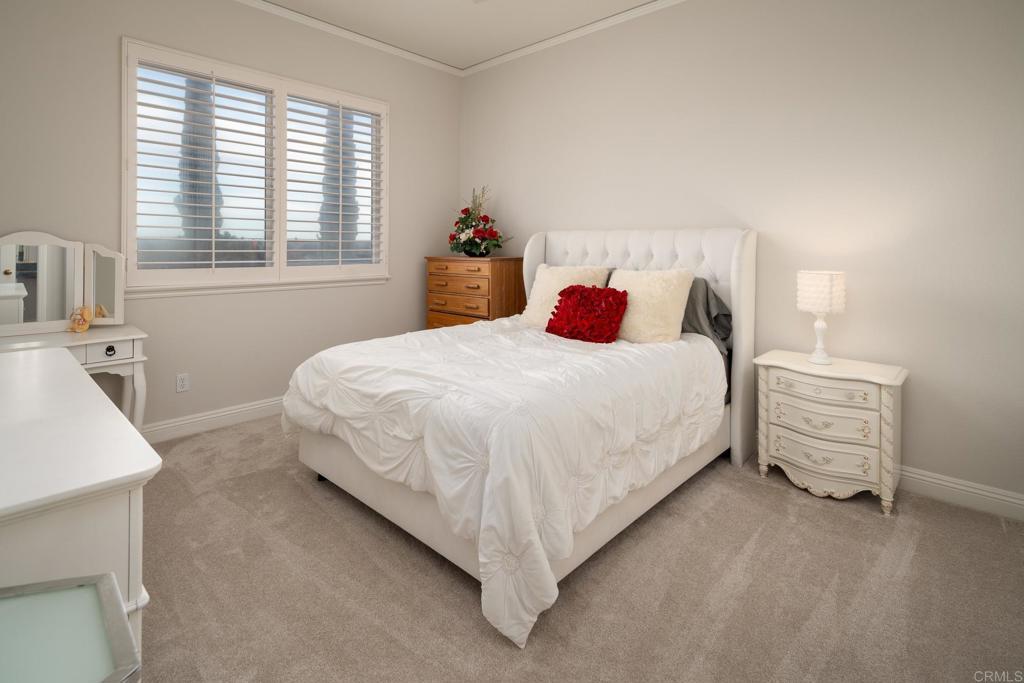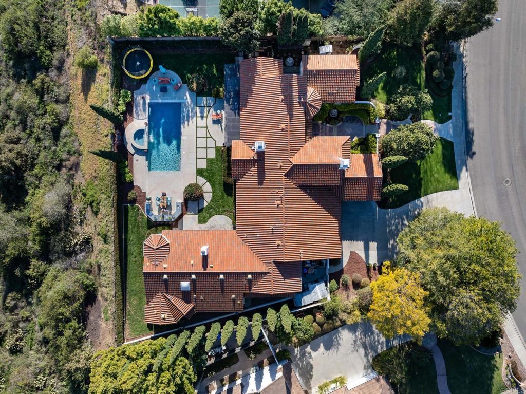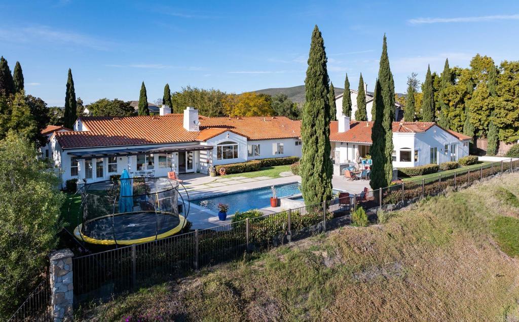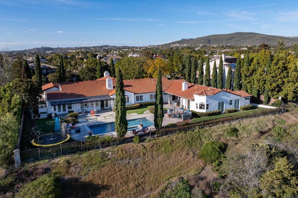 LOWEST PRICE/SF OPPORTUNITY IN THE RANCH AT CARLSBAD — A Rare Single-Level Hacienda Estate with Detached Guest House, Sweeping Views, and Exceptional Multigenerational Flexibility. Privately positioned on a serene .59-acre hilltop cul-de-sac, 7992 Paseo Esmerado blends timeless California architecture with expansive indoor-outdoor living and one of the most versatile floorplans in the community. Offering approximately 4,750 SF in the main residence plus a 1,400 SF detached guest house, this custom estate captures breathtaking southwest canyon and city-light views while delivering privacy, scale, and lifestyle rarely found in this coveted Carlsbad enclave. Originally a Ranch Plan 2 and thoughtfully expanded, the home lives primarily as a single-story residence with en-suite bedrooms throughout, soaring ceilings, multiple fireplaces, and twelve sets of French doors that flood the interiors with natural light and open seamlessly to the outdoors. Designed for entertaining and everyday comfort, the property features a custom 1,000-bottle temperature-controlled wine cellar and tasting room, expansive living and dining spaces, and a massive bonus/game room with full bar, SubZero refrigeration, beer taps, and separate entry — offering potential as an additional private living space, executive retreat, or entertainment pavilion. Outdoor living unfolds across a spectacular resort-style setting with a 40-foot pool and spa, outdoor kitchen, covered lounging areas, and private entertaining deck positioned for sunset views. Mature landscaping and thoughtful placement of the home create a secluded backyard oasis rarely achieved in the neighborhood. A four-car garage, multiple climate zones, and extensive upgrades throughout further enhance comfort and functionality. Located within The Ranch at Carlsbad, residents enjoy a lifestyle defined by rolling hills, scenic walking trails, and proximity to award-winning schools including Olivenhain Pioneer Elementary, Diegueño Middle School, and La Costa Canyon High School. Just minutes from world-class golf and resort amenities at Omni La Costa, coastal beaches, Carlsbad Village dining, and premier shopping, this property offers the ideal balance of privacy and convenience in one of North County’s most desirable communities.
