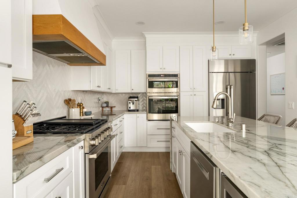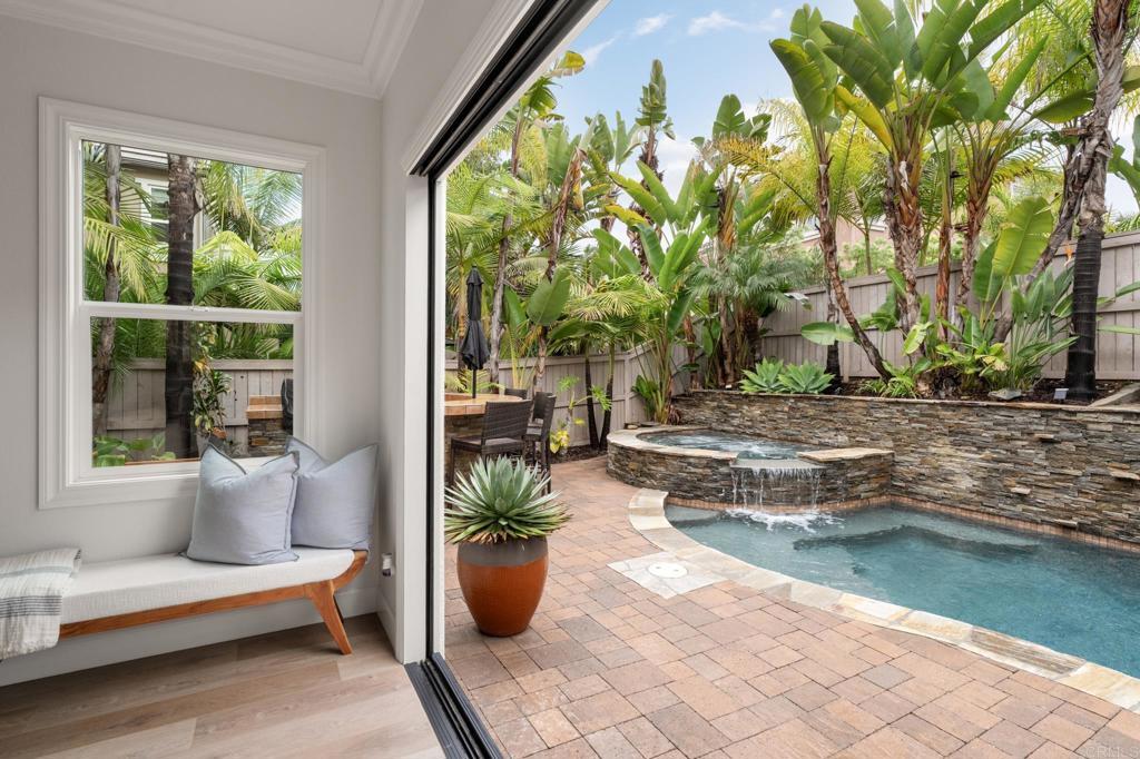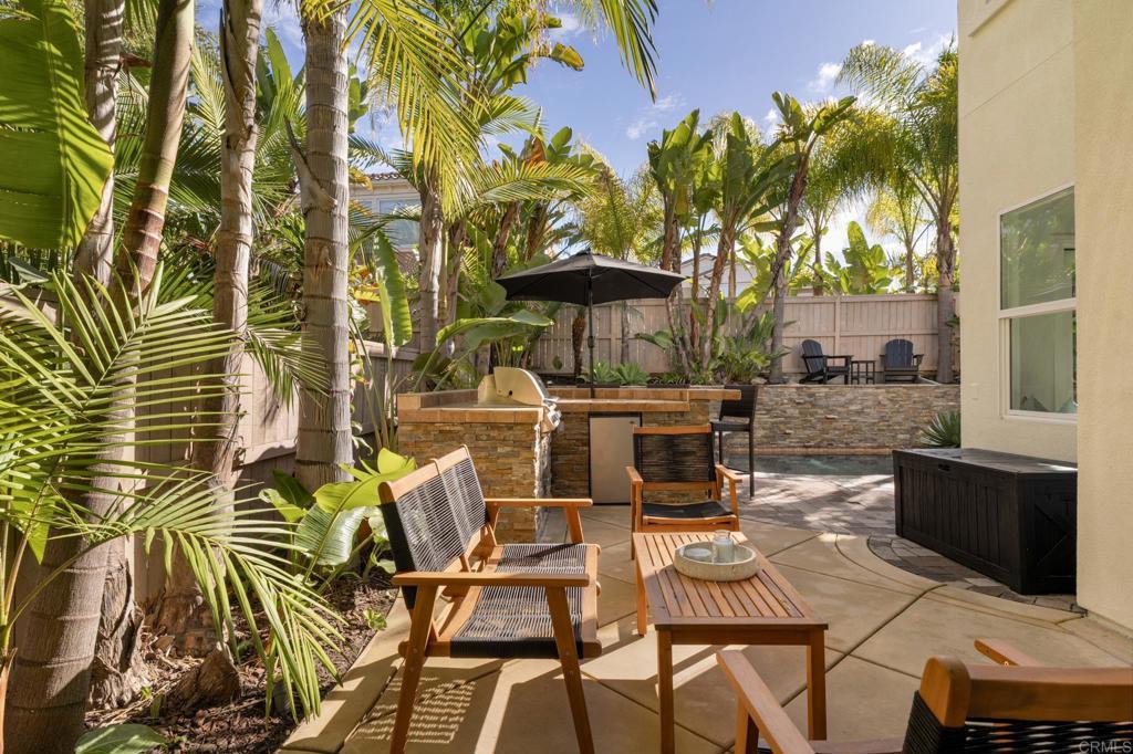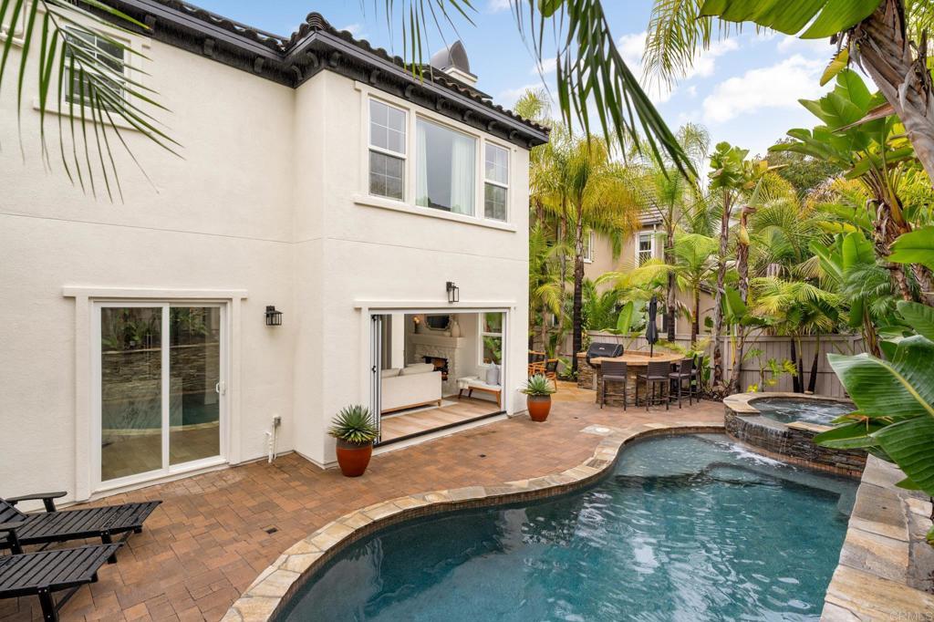 Entertainer's yard with modern upgrades! This stunning 5 bedroom plus office plus loft, 4 bath home is largest floor plan in the Venzano community near San Elijo Hills. Recently refreshed with new paint inside and out, this beautifully upgraded 3,437 sq ft residence delivers seamless indoor/outdoor living and designer finishes throughout. Inside, light-filled spaces feature luxury vinyl plank flooring and updated lighting. The remodeled chef’s kitchen is a true centerpiece with white shaker cabinetry, soft-close drawers, a dramatic Quartz double waterfall island, custom pendant lighting, and herringbone backsplash. High-end appliances include a Dacor built-in refrigerator, range with custom hood, double ovens, Bosch dishwasher, wine fridge, and appliance garage. A butler’s pantry with second wine fridge and walk-in pantry provides exceptional storage. La Cantina doors open to a private backyard retreat with a sparkling pool and Baja shelf, spa with waterfall, built-in BBQ with outdoor refrigerator. Designed for easy maintenance and year-round enjoyment, it’s an entertainer’s dream. The main level includes a full bedroom and bath, spacious living and dining areas, and a private office with custom built-ins. Upstairs features four additional bedrooms and a generous primary suite with dual closets, jetted tub, and oversized shower. Also equipped with owned solar for home and pool, dual A/C, tankless water heater, laundry room, a two-car garage with extra storage and newer windows. Located on quiet, wide streets with a neighborhood tot lot, it's close to popular Questhaven park. There are trails leading to San Elijo Elementary and Middle Schools and it is zoned for San Marcos High. Experience the best of San Elijo Hills living with Town Center shopping and dining nearby and 18 miles of scenic trails for hiking, biking, and outdoor adventure. Modern living and move-in ready!