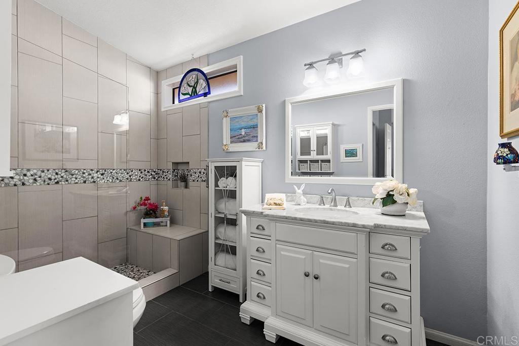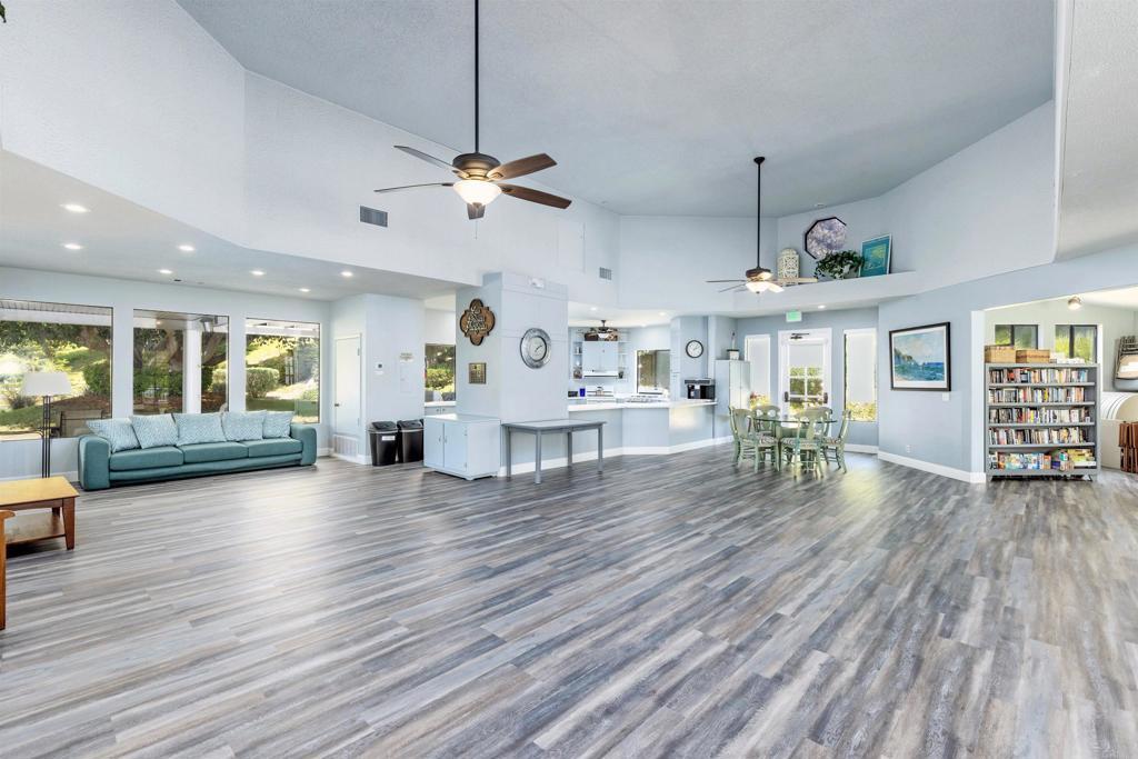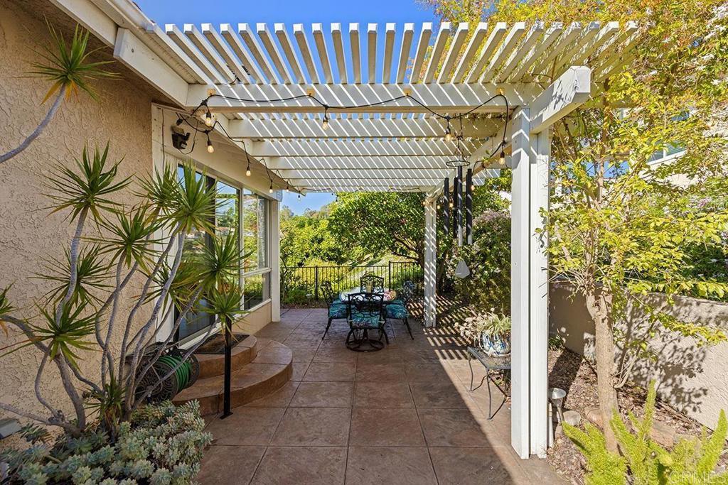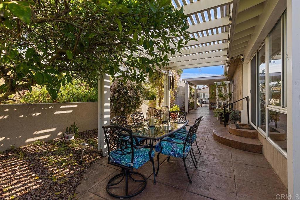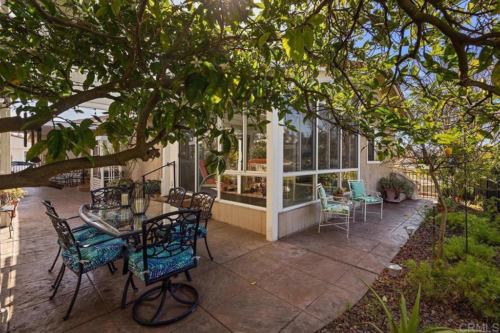 This remarkably beautiful home is located in the desirable Las Brisas Pacificas, a gated community exclusively for residents aged 55 and over. Situated just 7 miles from the beach, this home offers both convenience and an exceptional quality of life. Land owned home and low HOA make this community an exceptional value. The residence has been completely updated to provide modern comfort and style. The remodeled kitchen and primary bathroom are designed with contemporary finishes, while the hand-scraped wide plank laminate flooring and tile flooring throughout the home add a touch of elegance. The designer color palette creates a welcoming and sophisticated atmosphere. Ship-lapped walls add a custom feel to the home. A sunroom addition, enclosed entirely with windows, offers an extra square footage of living space, perfect for relaxation or entertaining guests. Dual pane windows with plantation shutters enhance both energy efficiency and aesthetic appeal, and three solar tubes provide abundant natural light throughout the interior. The home includes an oversized two-car garage and an indoor laundry area. A garden patio, enhanced by two aluminum patio covers, stamped colored concrete and fragrant plantings, provides a comfortable outdoor space with lovely views and privacy. The home is equipped with HVAC that is only five years old, ensuring reliable comfort year-round. Every detail has been thoughtfully considered to make this property a truly special place to call home.