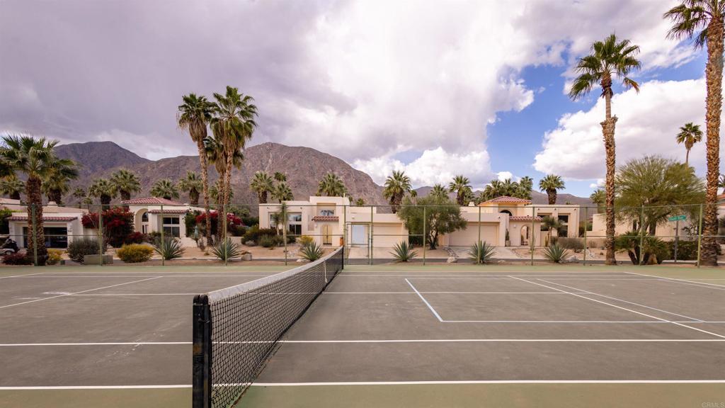 Nestled in the desirable Desert Shadows community, just steps away from the De Anza Desert Golf Course, this upgraded home boasts spacious living areas, high ceilings, and tasteful finishes throughout. The home features two generous en-suite bedrooms plus a versatile den that could easily serve as a third bedroom, with an additional half bath conveniently located off the hall. The open concept living area includes a vaulted-ceiling living room with a cozy fireplace, perfect for relaxing or entertaining guests. Large windows throughout add natural light, creating a warm and inviting atmosphere. The well-appointed kitchen includes a central island, ample counter space, and modern finishes, making it perfect for both cooking and entertaining. The primary suite offers a walk-in shower, dual vanities, and a serene atmosphere for rest and relaxation. Community amenities include a sparkling pool and spa, tennis and pickleball courts, and a fitness room.
