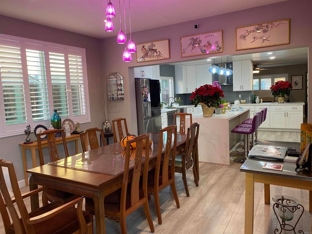 BEAUTIFULLY REMODELED HOME WITH ROOM ADDITION. Westside of Mira Mesa on a cul-de-sac street, close to a park, an elementary school and numerous shopping/restaurant opportunities. 2 remodeled bathrooms with floor to ceiling tiling, master bathroom comes with bluetooth controlled lighting and speaker, newer flooring, newer interior and exterior painting, enlarged & remodeled kitchen with waterfall island, glass tiled backsplash, and pantry. Permitted room addition with sliding door electric window treatment and shutters, and Hubspace controlled ceiling lighting. Backyard complete with fruit trees, vegetable garden opportunities, basalt rock water fountain, and two storage sheds. Front and rear yards complete with drip irrigation system and controller.