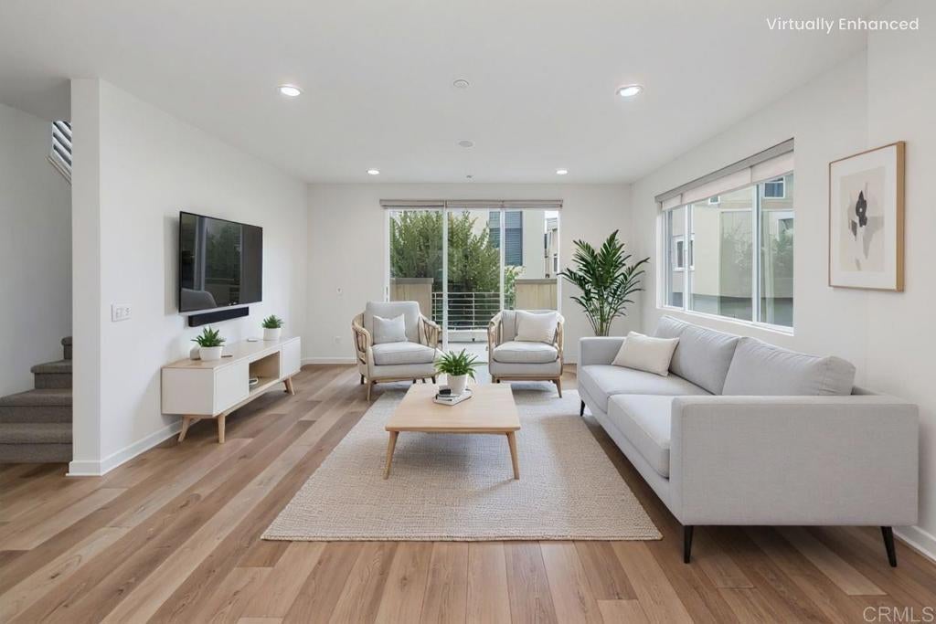 Welcome to 6140 Colt Place #104, a stunning three-story townhome offering 3 bedrooms, 3.5 bathrooms and approximately 2,081 sq ft of beautifully designed living space. With its modern style, thoughtful layout, and premium location in the Kensington at The Square community, this home perfectly balances comfort, function and the best of coastal North County living. Step inside to the main level, where an open-concept layout showcases a true entertainer’s kitchen—complete with an oversized island, sleek white cabinetry, abundant storage and generous counter space—ideal for gatherings or casual everyday living. From both the kitchen and dining area, you’ll enjoy warm, westerly light that fills the space and adds a relaxed ambiance. Upstairs, you’ll find two spacious bedrooms, each with its own ensuite bathroom. The primary suite features a luxurious oversized walk-in closet, offering exceptional storage and organization. A conveniently located laundry closet on this level adds ease and practicality to daily living. On the lower level, the third bedroom provides total privacy—perfect for guests, extended family, or a quiet home office. No detail has been overlooked: the home includes dual-zone air conditioning, a tankless water heater, solar panels, and a 220 V outlet in the garage—perfect for EV charging. The attached two-car garage offers direct access for everyday convenience. Set on one of the premium lots within the community, this residence enjoys a uniquely private setting—positioned away from the main road, parking areas and high-traffic zones—yet remains just moments from your next outing. The community amenities are resort-style and include a pool, tot lot, mini-golf area and outdoor grilling spaces. Location is truly unbeatable—just steps from The Square at Bressi Ranch, where you’ll find vibrant restaurants, coffee shops and fitness studios, and just beyond that, the Bressi Ranch Village Center, offering grocery stores, salons, boutiques and everything needed for everyday convenience. Zoned for highly rated Carlsbad schools, this home delivers exceptional quality in both lifestyle and education. With modern upgrades, a private and flexible floor plan, and an unmatched walkable location, it truly captures the best of Carlsbad’s coastal living.