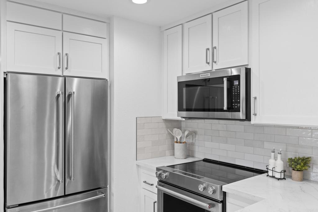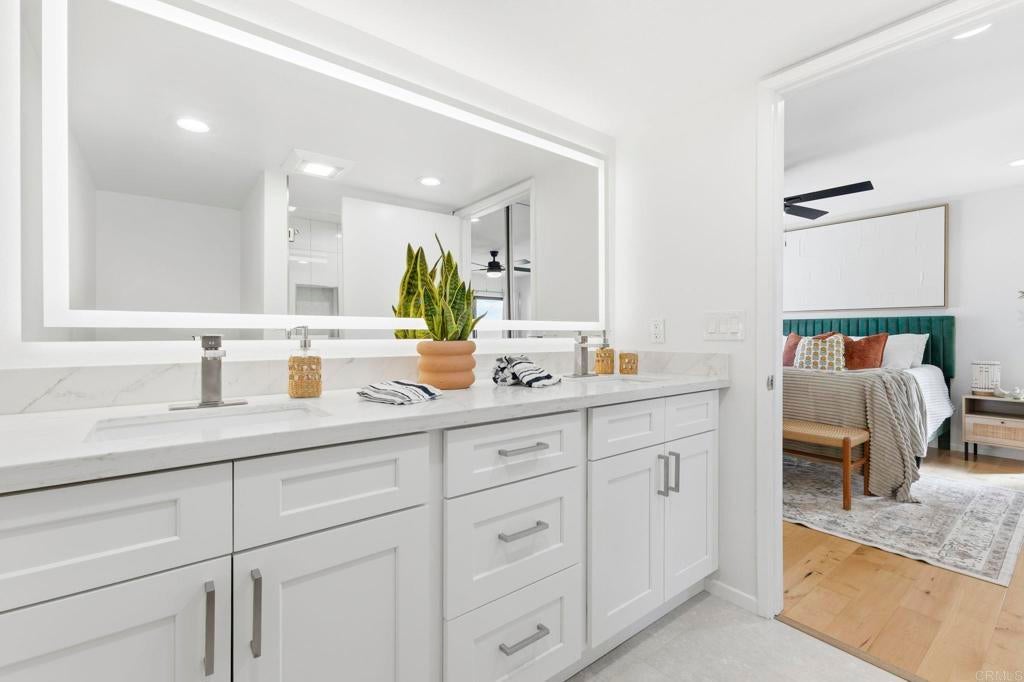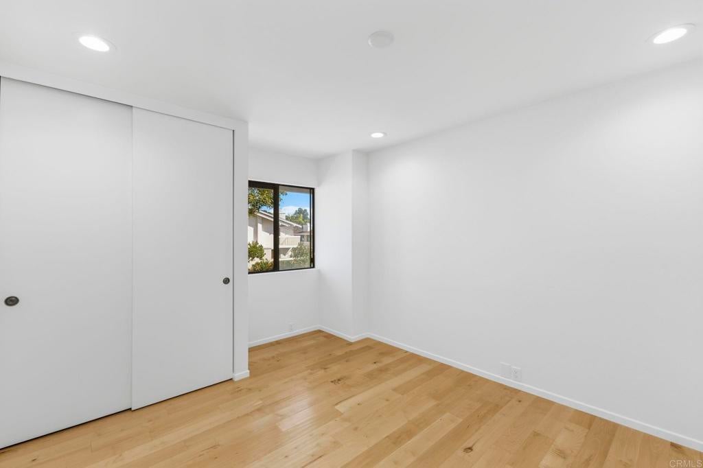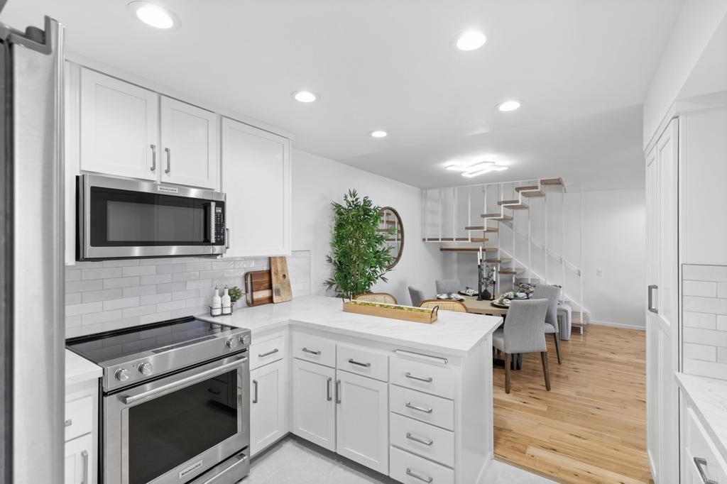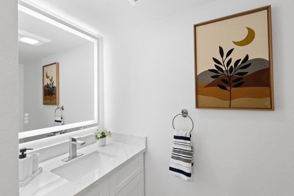 Experience elevated living in this refreshed 3-bedroom, 2.5-bath townhome, thoughtfully redesigned with timeless finishes and modern comfort in mind. Nestled within the highly desirable Playmor Terrace community, this turnkey residence offers the perfect blend of style, function, and location. Upon entry, you’re welcomed by a light-filled interior enhanced by fresh designer paint, newly added recessed lighting, new baseboards, and engineered hardwood flooring. The kitchen has been tastefully upgraded with new tile flooring, new countertops, a sleek backsplash, and an updated deep sink, creating a clean and contemporary aesthetic. The renovated main-level 1/2 bathroom features a new vanity, LED mirror, and modern toilet perfect for entertaining guests on one floor. All three bedrooms are situated upstairs and have been refreshed with new paint, recessed lighting, new baseboards, and updated sliding closet doors. The shared guest bath has been upgraded with new tile flooring, vanity, exhaust fan, and LED mirror and toilet. The primary suite bath has been completely reimagined with a brand-new dual vanity, expansive LED mirror, updated exhaust fan, and a newly tiled walk-in shower with custom glass swivel door. A newer central HVAC system and brand-new water heater provide efficiency and year-round comfort. The home includes two deeded parking spaces (#130): one detached carport and one uncovered space. Residents of Playmor Terrace enjoy beautifully maintained greenbelt spaces and a community pools. Ideally situated with effortless access to the 805, 52, and 5 freeways allows your lifestyle to expand to neighboring communities with ease. Not to mention premier shopping and dining at Westfield UTC Mall, walking distance to grocery stores and eateries, bus stops, Doyle Community Park, and just 4 miles from the world-famous La Jolla Shores.