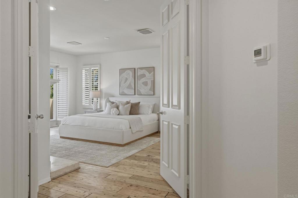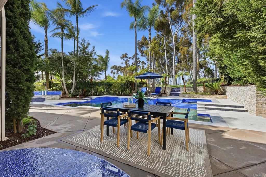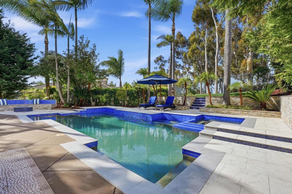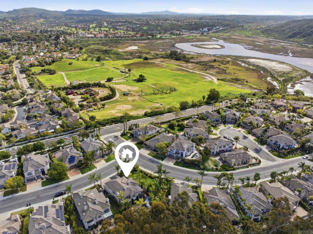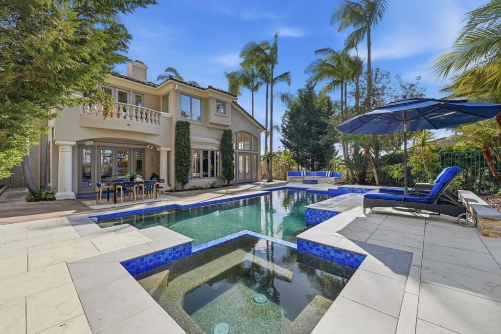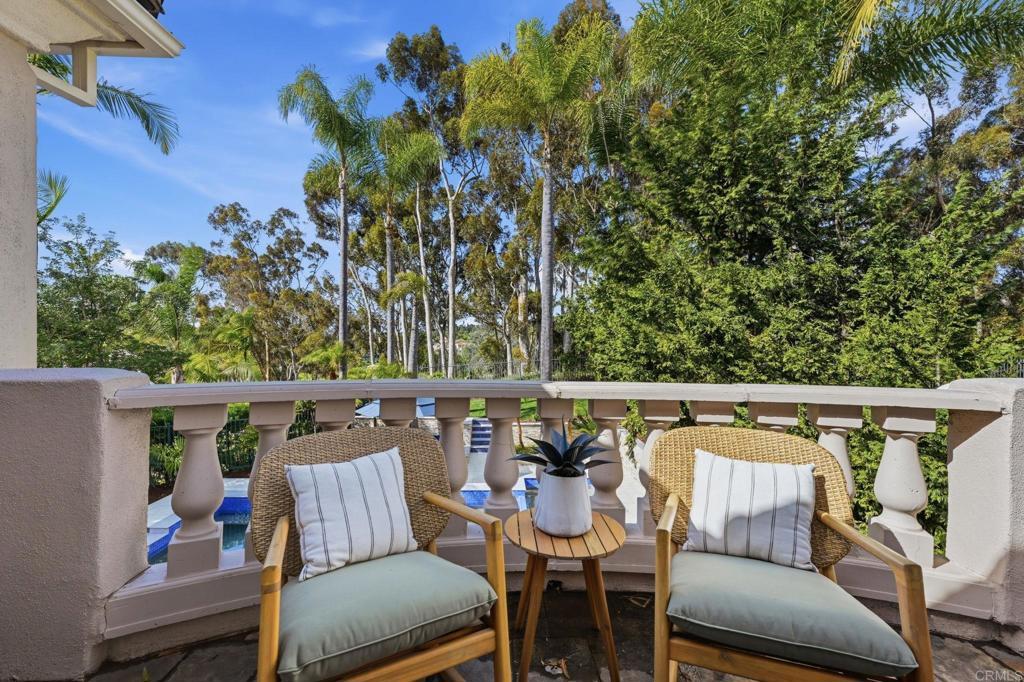 Exquisite Aviara Pavona Davidson-built estate ideally positioned backing to the Aviara Golf Course, offering exceptional privacy, timeless architecture, and a serene natural setting. This beautifully designed residence features four spacious bedrooms plus an elegant primary retreat, creating a flexible layout ideal for both everyday living and entertaining. The thoughtfully designed floor plan includes a desirable downstairs bedroom with ensuite bath, along with a separate powder room for guests. Soaring ceilings, solid core doors some 8 ft, and custom Hevea wood flooring enhance the home’s sense of scale and craftsmanship, while expansive windows invite in natural light and tranquil greenery views. Outdoors, a newly refreshed pool is framed by lush tropical landscaping, creating a peaceful and very private backyard retreat. The home’s location backing to the golf course provides an open, nature-oriented backdrop without direct fairway exposure, offering both quiet and seclusion. Two upstairs bedrooms feature private balconies that add charm and architectural interest while overlooking mature trees and surrounding landscape. This exceptional residence blends luxury, comfort, and functionality in one of Aviara’s most sought-after communities, delivering refined coastal living with a rare sense of privacy and natural beauty.Located in the prestigious Aviara Community, residents enjoy access to highly rated schools, scenic walking trails, and proximity to nature. The home is approximately one mile to the beach and within walking distance to Batiquitos Lagoon.Homeowners also benefit from exclusive privileges at the Park Hyatt Aviara Resort and the world-class Aviara Golf Club offering a truly resort-style lifestyle.