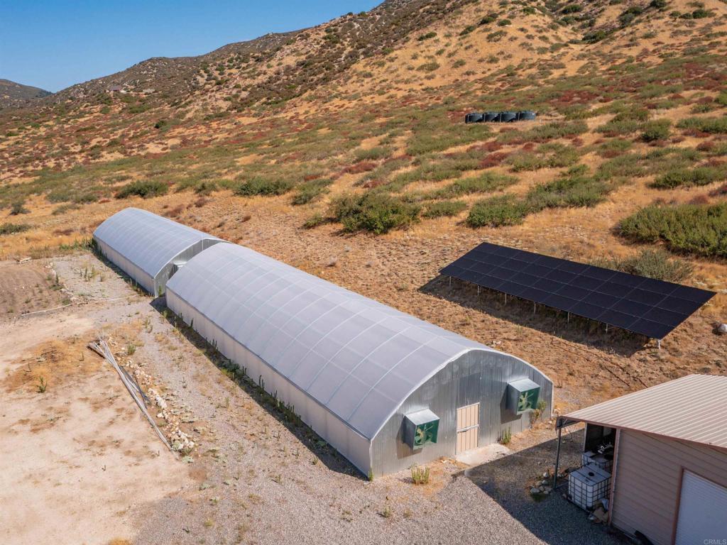 Nestled on the southern margin of Warner Springs, this expansive 129.55 +/- acre San Felipe Valley Farmland offers a rare chance to embrace a lifestyle of self-sufficiency while indulging in the beauty of the San Diego backcountry. With breathtaking views of the San Felipe Valley, this property is a haven for those who cherish both the serenity of rural living and the potential for sustainable agriculture, complemented by the existing comprehensive agricultural infrastructure. Imagine waking up to panoramic vistas of Granite Mountain and Volcan Mountain, your home set amidst a landscape that is as fertile as it is picturesque. ~Sustainability is at the heart of this property with 2 robust water wells supported by a 30k gal water storage system, and a state of the art off-grid solar electric system with public power available. ~Agricultural zoning (A70) with an “O” animal designator provides vast flexibility for a variety of farming ventures. Currently, the property boasts 20+/- acres of prepped land ready for cultivation, including 10+/- acres fully equipped with irrigation. The soil has been meticulously improved with cover crops, compost, and no pesticides, making it ideal for a range of crops beyond the existing olive grove. With 750± mature olive trees, the orchard offers compelling production potential, with estimates ranging from 30,000–50,000 pounds. Two (30’x90’) automated greenhouses, complete with light deprivation technology and climate control systems, expands the potential for diverse agricultural endeavors. ~Partially fenced and potential for additional construction, this property is the perfect canvas for building your dream home, surrounded by natural beauty and agricultural bounty. ~Surrounding areas of Warner Springs, Julian, and Anza Borrego beckon with recreational and community activities. Explore the Pacific Crest Trail, with some of the best hiking, horseback riding, and endless opportunities to connect with nature. Additionally, this property is adjacent to BLM federal public land ensuring privacy and undisturbed, natural landscape. ~Whether you're looking to start an agricultural enterprise, build a custom home with stunning views, or simply enjoy the peaceful, rural lifestyle, this property has it all! *Farming equipment may be included with an acceptable offer.
