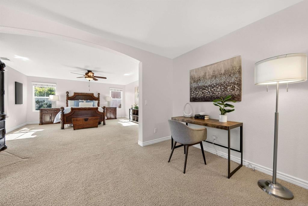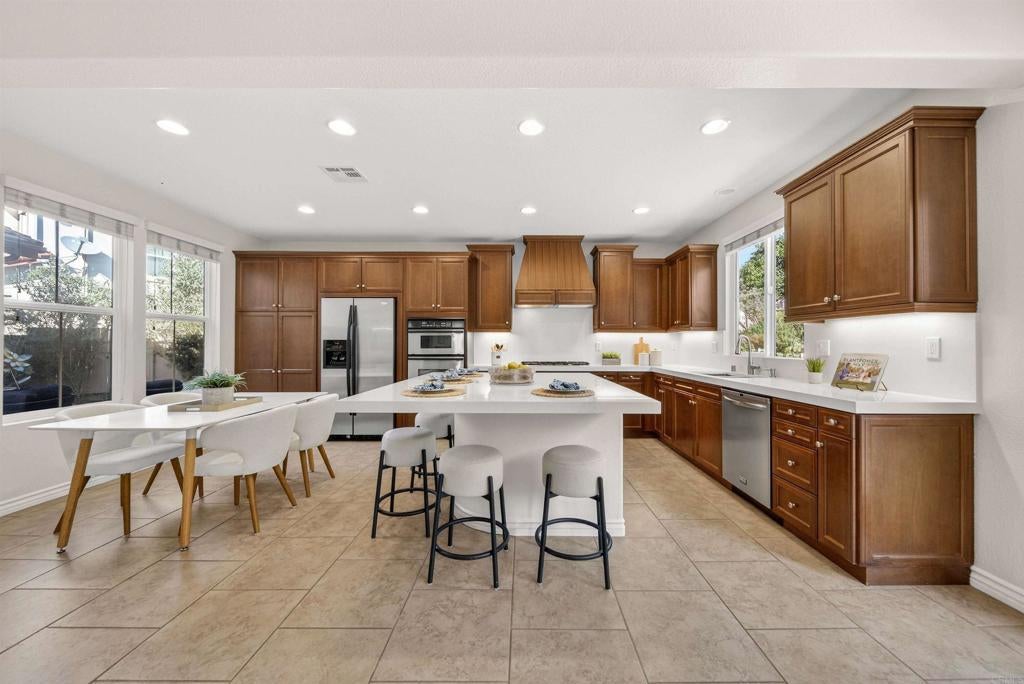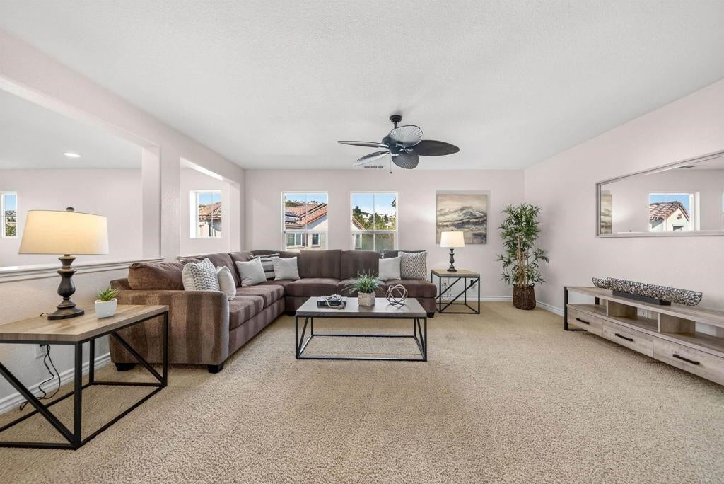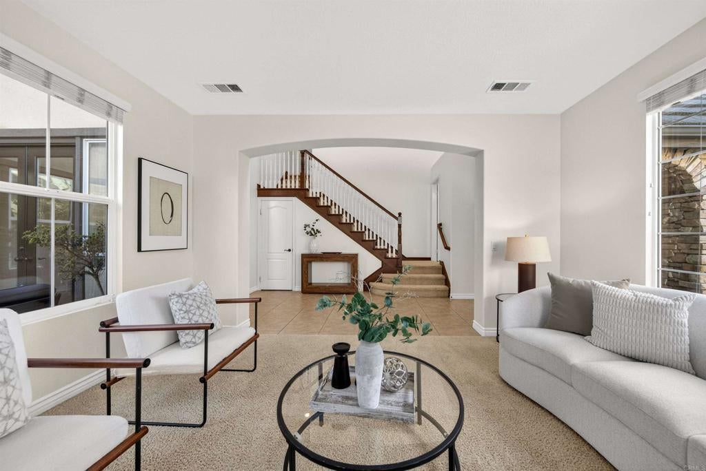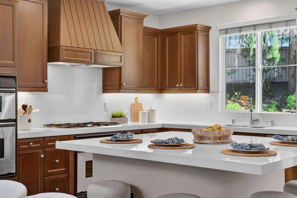 Rare opportunities like this are hard to find! Positioned in San Elijo Hills on a spacious cul-de-sac lot within the gated community of Saverne, this special residence offers a blend of space, privacy, pool-side outdoor living, and the added benefit of solar energy. The backyard is an entertainer’s dream showcasing a sparkling pool and spa, built-in BBQ area, fire pit, and multiple areas perfect for gatherings, celebrations, or relaxation. Fresh interior paint and a thoughtfully designed layout create a bright and welcoming environment, featuring formal living and dining rooms, a recently updated kitchen with brand new counters and a center island that overlooks the family room, a first-floor bedroom with full bath, and an optional den/office that could be converted into an additional downstairs bedroom. Upstairs, a spacious loft adds flexibility alongside two secondary bedrooms and an oversized primary suite with a retreat, dual walk-in closets, and a private ensuite bath. A charming garden and courtyard provide a peaceful outdoor escape where butterflies flutter, adding warmth and natural beauty to the home’s inviting atmosphere. Ideally located near popular rated schools, parks, scenic trails, and the vibrant Town Square, this residence captures the true charm of San Elijo Hills living. From lively pool days to evenings spent under the stars, this special home has been the setting for extraordinary memories and now awaits its future story!