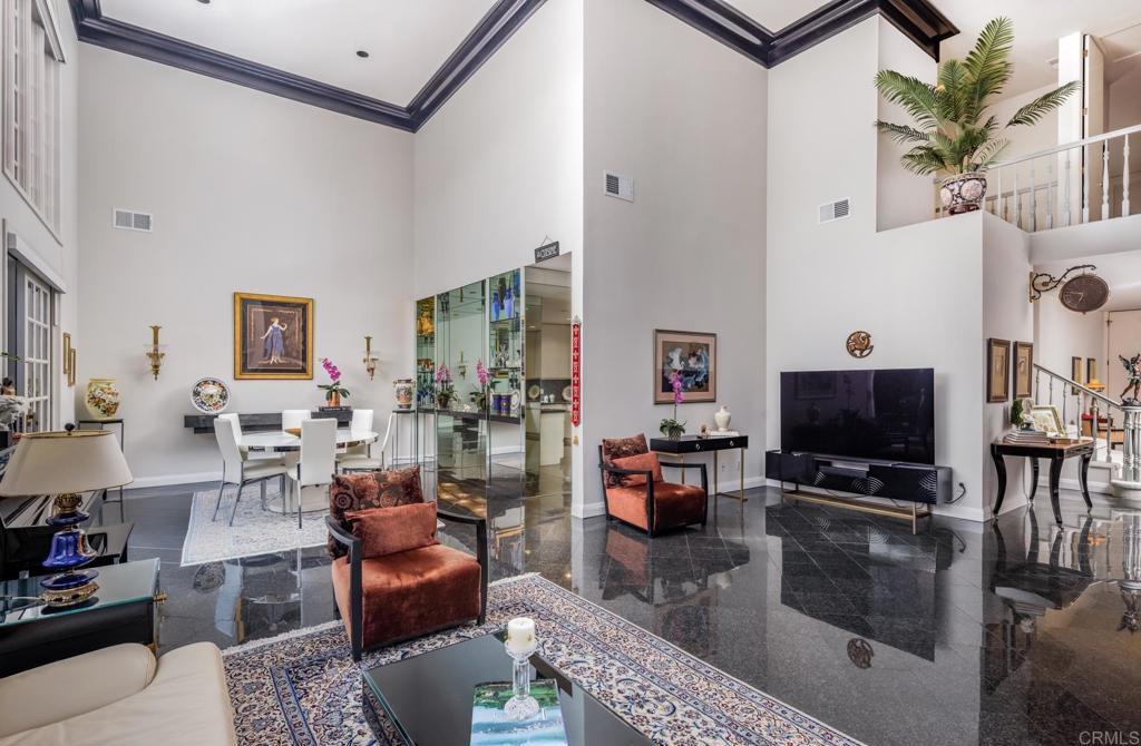 Timeless elegance meets effortless living in this beautifully appointed home in The Jockey Club, La Costa. This rare offering features a private ELEVATOR—an extremely sought-after and seldom-found amenity within the community. From the moment you enter, you’re greeted by dramatic black marble floors, 22 ft ceilings, and floor to ceiling windows that set a tone of sophistication and luxury. The thoughtfully designed layout offers refined living spaces ideal for both everyday comfort and stylish entertaining, all enhanced by a seamless flow between levels via the elevator, perfect for convenience, accessibility, and long-term livability. The spacious primary suite serves as a private retreat, while the secondary bedroom offers versatility for guests, a second primary, or a home office. Each bathroom is well-appointed, and the stylish downstairs powder room adds functionality for entertaining. Ideally set within the interior of the community offering a quiet, serene location. Residents of The Jockey Club enjoy beautifully maintained grounds, pool, clubhouse and a prime La Costa location with direct access to the world-class Omni La Costa Golf Course and close proximity to shopping, dining, Equinox, and the beach. Homes with elevators in this community are exceptionally rare, making this a truly unique opportunity. Elegant. Sophisticated. Rare. This is La Costa living at its finest.