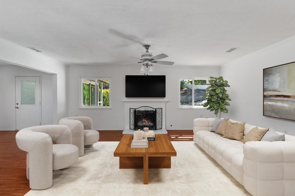 Welcome to one of the most spacious single-story homes in the desirable 55+ Seven Oaks community. With 2,208 sq ft, this well-maintained residence offers four bedrooms plus a sunroom and two bathrooms—providing flexibility for everyday living, guests, or hobbies. The home is filled with natural light and features ceiling fans in every room. The primary suite includes a dual-sided fireplace, spa-style bathroom, and large walk-in closet. The kitchen is equipped with stainless steel appliances, and a separate indoor laundry room adds everyday convenience. Additional highlights include owned solar for energy efficiency and a finished two car garage with epoxy flooring. The backyard is spacious and low-maintenance, with mountain views, a covered patio, and an air-conditioned sunroom ideal for year-round enjoyment. Seven Oaks residents enjoy access to a wide range of amenities, including a pool, spa, pickleball courts, clubs, and social activities. Conveniently located near shopping, dining, Bernardo Winery, Oaks North Golf Course, and easy access to I-15. Low HOA fee and no Mello-Roos. With its generous layout, thoughtful features, and excellent value, this home is a standout opportunity in Seven Oaks.