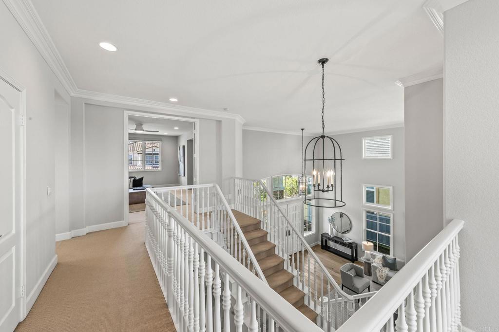 Welcome to 12833 Baywind Point - a beautifully updated Promontory Plan home nestled on a quiet cul-de-sac with stunning canyon views in one of San Diego's most desirable neighborhoods. This thoughtfully upgraded residence offers spacious, light-filled living areas designed for both everyday comfort and effortless entertaining. The house features generous living spaces with an ideal floor plan for families with 5 bedrooms, 4 1/2 baths and a large bonus room upstairs, perfect for a play room or movie room, owned Solar with Tesla Powerwall battery and EV charger in the garage for easy charging. Expansive windows frame beautiful canyon vistas, bringing natural beauty indoors and creating a serene backdrop for daily living. Step outside to a refreshed backyard designed for year-round enjoyment. A covered seating area provides the perfect setting for outdoor eating or relaxing, while a built in gas fire pit creates a warm, inviting space for evening gatherings. A sleek glass fence preserves the expansive canyon views while maintaining safety and sophistication, allowing you to fully enjoy the natural surroundings. Situated in a highly sought-after community known for top-rated schools, quiet streets, and exceptional quality of life, this property is perfect for families seeking both convenience and tranquility. Scenic trails and parks are within walking distance, offering endless opportunities for outdoor recreation and connection to nature. This is a truly turnkey property impeccably maintained, tastefully upgraded, and ready for its next owner to move right in and enjoy.