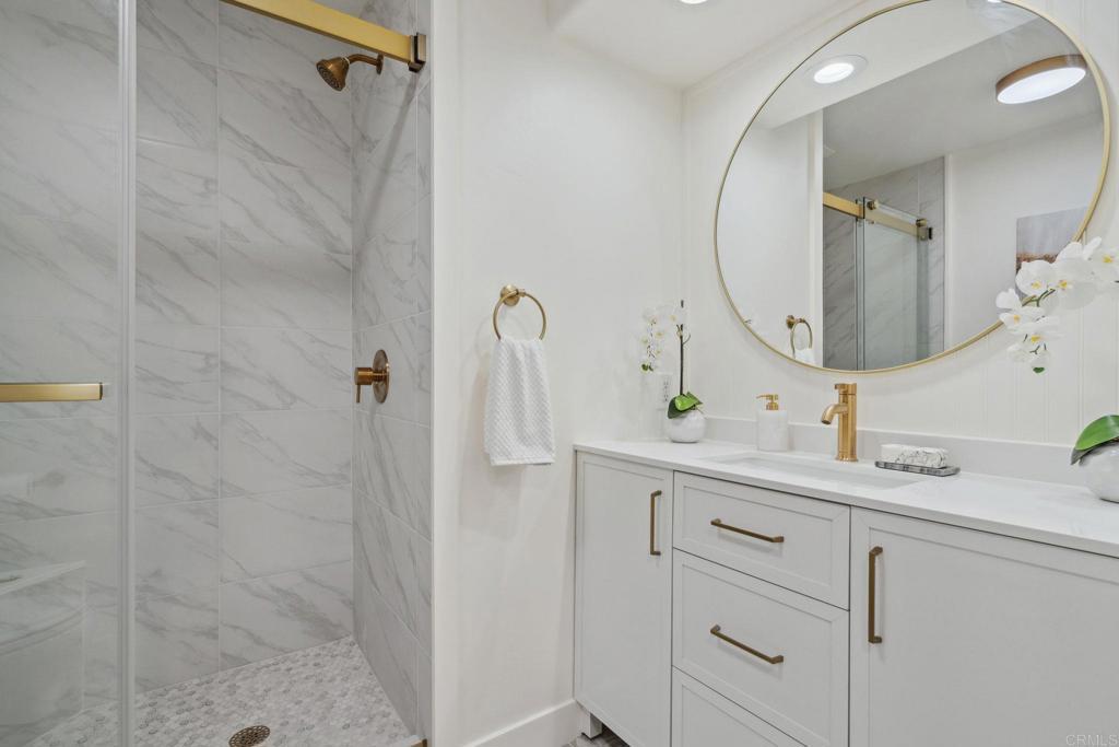 Stunning completely remodeled townhome with gorgeous views in the highly desirable resort style Lake San Marcos community! This meticulously upgraded 3 bed/2 bath residence features a gourmet kitchen with custom fabricated cabinetry, dual large pantries, white quartz countertops, and a beautiful white oak peninsula. All new stainless-steel appliances include range, hood, dishwasher, refrigerator, and microwave. The open-concept living and dining areas showcase a custom white oak bookcase partition wall and stylish wallpaper accent walls, while the bonus room offers versatile space for office or play with noise reduction insulation. Both bathrooms have been beautifully upgraded with new vanities, fixtures, tiled surrounds, and gold decorative accents. The master bath additionally features a custom tiled shower with glass door and white oak floating shelves. The freshly painted interior also includes luxury vinyl plank flooring, new light fixtures, ceiling fans, and custom gold door handles. The remodeled laundry space includes new washer/dryer, cabinets, and butcher block countertop. Additional highlights include a single car garage with remote door opener, plus bonus exterior parking, and a spacious storage/hobby room. The low HOA of $420/month includes water, trash, and garage electrical. Optional Lake Lodge membership provides access to tennis, pickleball, pools, gym, and game room. Award winning San Marcos schools and walkable to local shopping and dining.