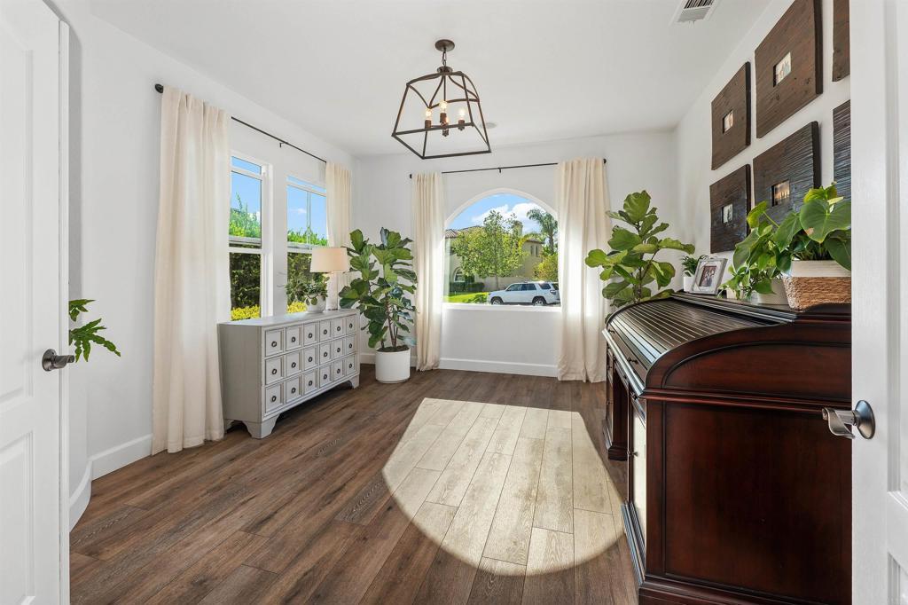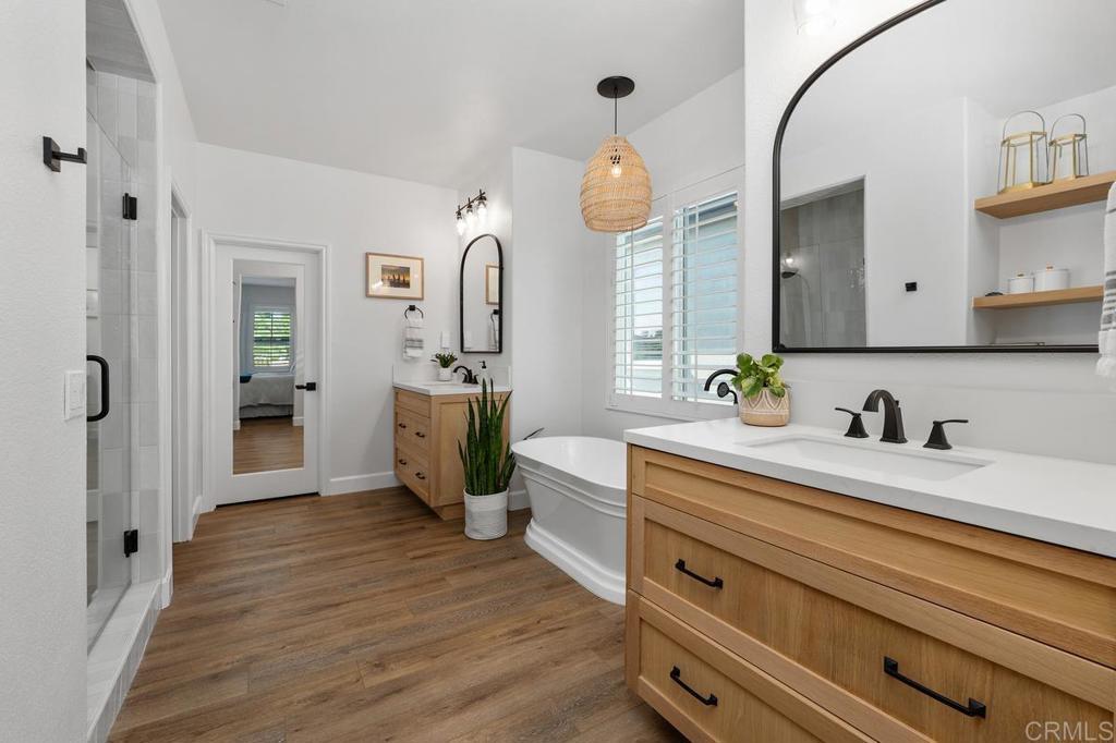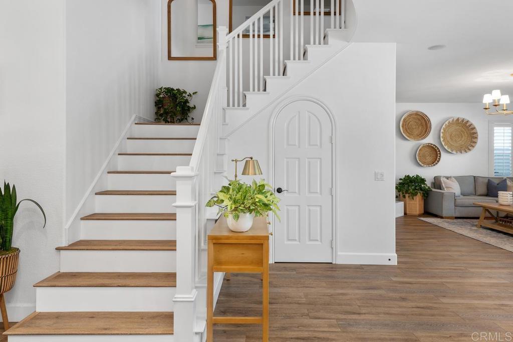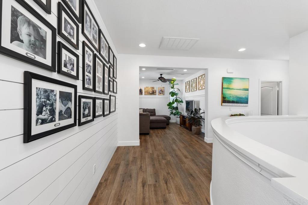 Now accepting back up offers! Welcome to 1781 Lemon Tree Court, a refined & updated residence in the desirable community of Venzano. Thoughtfully remodeled inside and out, this 4-bedroom with optional 5th/bonus room, 4-bath, Plus office home, offers versatility for today’s lifestyle. Step inside to find wide-plank luxury vinyl flooring, custom board & batten moldings and a light-filled open floor plan. The designer kitchen has been transformed with ceiling-height cabinetry, quartz countertops, farmhouse sink, custom range hood, large pantry closet and a shiplap ceiling that adds character and warmth. A new fireplace surround, curated lighting throughout and stylish finishes complete the modern design. This Plan 1 home boasts the largest living room space in the Venzano commuity! The main level also includes a private office, bedroom and shiplap-accented full bathroom with step-in shower. Upstairs, the expansive primary suite opens to a private balcony with serene pool and mountain views. The spa-inspired bath features a freestanding soaking tub, walk-in shower, dual vanities, and a generous walk-in closet with built in organization. Additional bedrooms and a flexible bonus/optional 5th bedroom provides space for an additional living area, playroom or teen room. This spectacular home also features built-in speakers, a whole house fan, tankless water heater and leased solar which adds both convenience and efficiency. The backyard is a true retreat, perfect for entertaining -with a resort-style, solar heated pool with Baja shelf and spillover spa surrounded by manicured landscaping and yard space, built-in speakers and covered patio! Situated on a flat cul-de-sac with a pocket park just steps away, this home offers privacy, community charm and modern upgrades at every turn. Living in Venzano, which is San Elijo adjacent, means a lower tax rate and HOA, while still enjoying access to award-winning schools, miles of gorgeous hiking trails, ball fields, parks, shops and dining just minutes away. Modern upgrades, timeless design and a coveted location make this move-in ready home a rare opportunity.