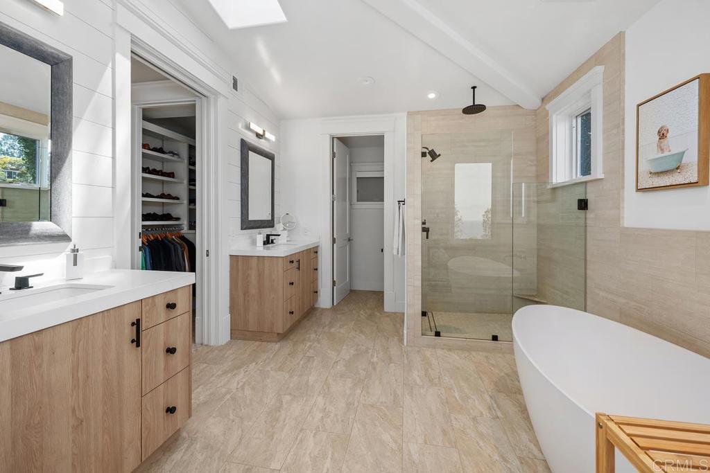 Positioned on a rare 1/3 acre hillside, this Del Mar showplace isn't just near the ocean, it is anchored by it. More than 180 degrees of Pacific horizon serve as the living wallpaper throughout the main house. Whether you are preparing a meal in the kitchen, working from the private office, or waking up in the primary suite, the coastline remains your constant, breathtaking companion. Behind the classic architectural lines lies an interior defined by light and effortless flow. The 4 bedroom main house is a sun-drenched sanctuary where high-end design meets a relaxed spirit. The primary suite is a masterclass in serenity, offering a spa-caliber bath, a bespoke walk-in closet, and a private vantage point for the daily sunset show. What truly sets this property apart is the substantial 1,130 square-foot secondary residence. Far more than the typical guest quarters, this is a fully realized 2-bedroom, 2-bathroom home with its own kitchen and living space. With independent access and parking off the adjacent 11th Street, it offers unparalleled flexibility—perfect for a professional-grade creative studio, hosting extended family, or capitalizing on high-demand seasonal stays during the racing season. From your quiet hillside perch, you are only a short, scenic walk from the eclectic energy of Del Mar Village. Experience a world where shopping and dining, local surf breaks, and the rhythmic pulse of the ocean are the essentials of your everyday life. *Main House 4BR/3.5BA 3,047sqft *Guest House: 2BR/2BA 1,130sqft