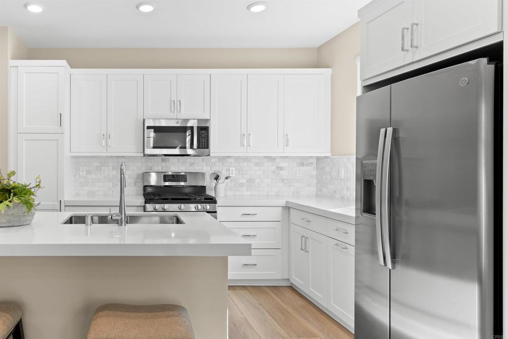 Seller Entertaining offers between $679,900-710,000 Best Price 3 Bedroom Townhome with upgrades through out. Welcome to this beautifully move in ready residence in San Marcos. Better than New Construction, this home offers modern finishes, thoughtful upgrades, and turnkey convenience including car charger in garage. The bright open concept kitchen features crisp white shaker cabinetry, quartz counter tops, stainless steel appliances, upgraded backsplash with subway tile and a spacious island. The natural light highlights the larger wide luxury plank flooring and contemporary recessed lighting throughout. This desirable end unit offers a great layout features a bedroom and full bathroom on the main living area ideal for roommates, guests, or multi generational living, or private office. The thoughtful floor plan provides separation and privacy between living spaces, making it functional and flexible for today's lifestyle. Paid solar! electric vehicle compatible, Low electric 2 car garage, gated community with quick access to highway 78, and 15. This tucked away end unit townhome has only one neighbor to the left away from main street noise with direct access to home from garage. Dont miss opportunity