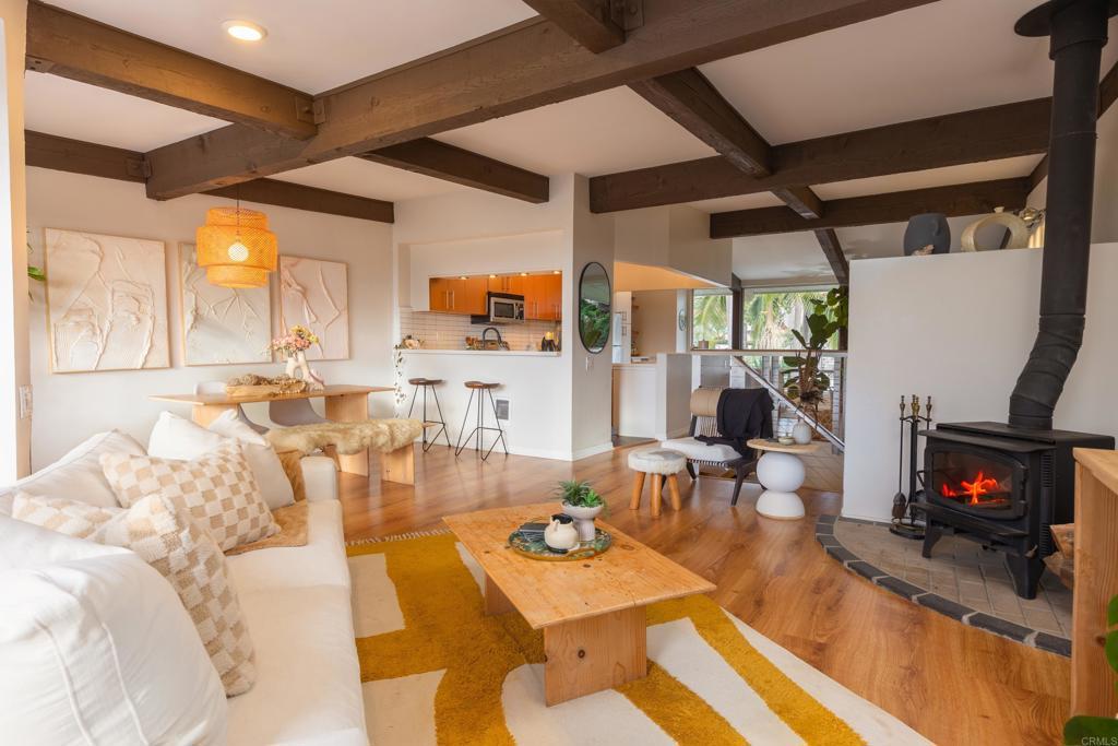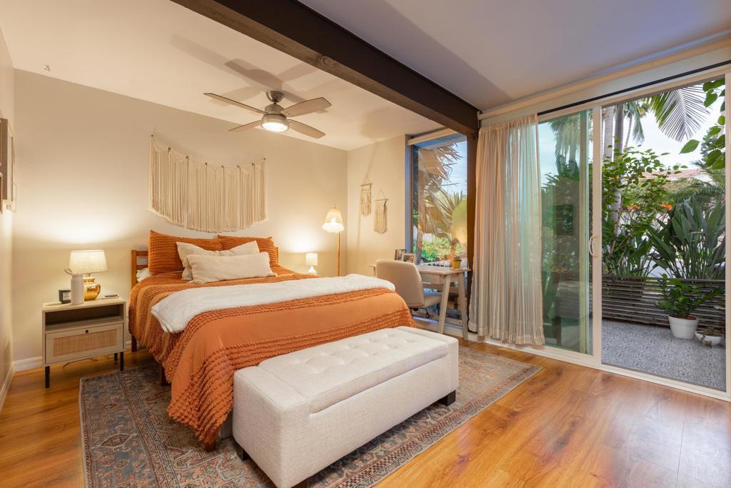 Enter into a split-level layout with open stairs that immediately create a bright, open-concept feel. Downstairs features two spacious suites and two full bathrooms, each with generous closets. One bedroom opens to a private patio, while the other offers a balcony—perfect spots to soak in the views. Floor-to-ceiling glass sliding doors and expansive windows flood the home with natural light and showcase truly breathtaking views overlooking the Omni Golf Course, the lagoon, and the ocean horizon. Watch the sun dip below the water as the sky lights up with color—your own front-row seat to sunset magic. Recent upgrades include the kitchen, flooring, stairs, bathrooms, dry bar, ceiling fans, and glass sliding doors. Stunning exposed wood ceiling beams add warmth and architectural character, while the cozy free standing black wood-burning fireplace brings a touch of 1940s charm. Whether you’re enjoying west-facing views of the golf course, lagoon, and ocean, or east-facing views of lush landscaping and vibrant people-watching, this home delivers the laid-back California lifestyle you’ve been looking for. Contact me soon—this townhome won’t last long