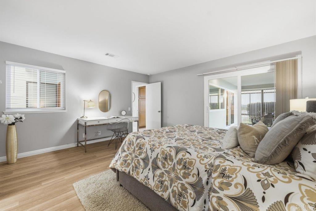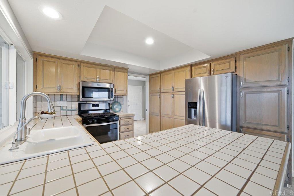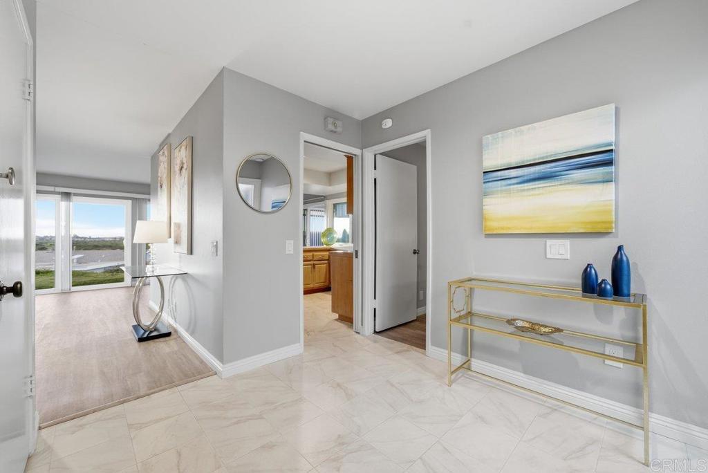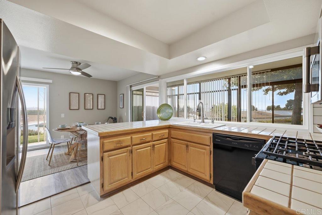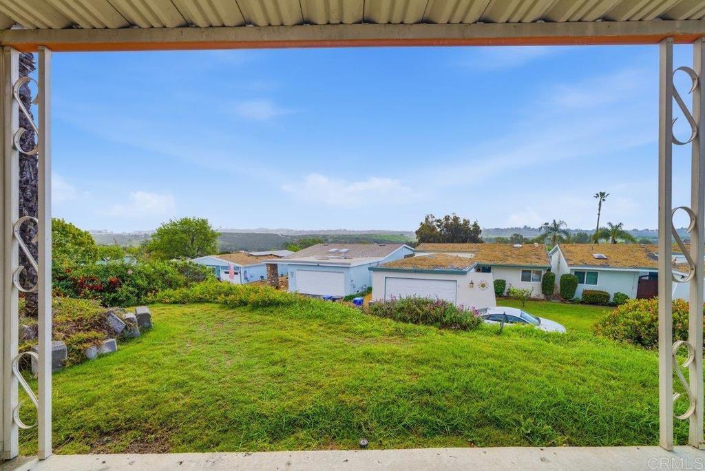 Welcome to one of the most desirable lots in the community! This beautiful single-level 2-bedroom, 2-bath home sits on a spacious and private premium lot with sweeping views. Designed with an open floor plan and wall-to-wall built-ins, the home features upgraded flooring and vinyl windows throughout, offering both comfort and functionality newer roof. The spacious kitchen includes a built-in range, oven, dishwasher, disposal, and refrigerator, and flows seamlessly into the dining area with direct access to a stunning covered patio—perfect for entertaining or relaxing while enjoying the views. An enclosed patio provides additional flexible living space ideal for a sunroom, office, or peaceful retreat. The primary suite offers a walk-in closet with custom built-ins and a private slider leading directly to the patio area, creating a seamless indoor-outdoor flow. The secondary bedroom and bath are thoughtfully positioned for privacy. Washer and dryer are included, and the home is truly move-in ready. It can be sold fully furnished or vacant for added convenience. Located in a vibrant, amenity-rich community featuring a pool, spa, tennis courts, and possible RV parking (subject to availability and HOA approval). Just minutes from highly desirable Oceanside beaches, downtown dining, shopping, and coastal attractions. A rare opportunity to own one of the premier lots in the entire development.