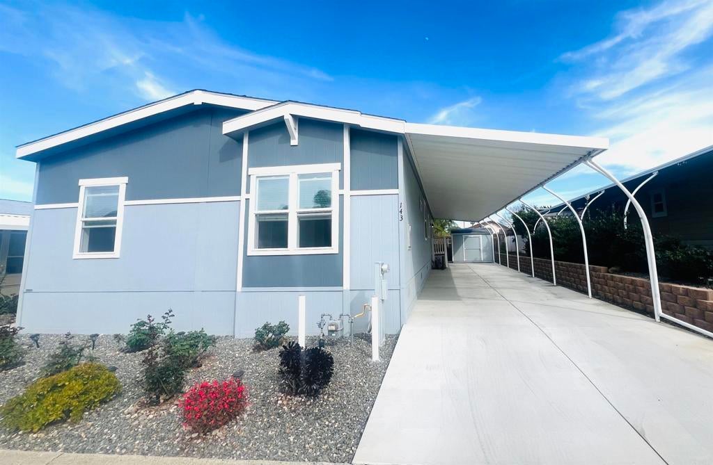 Located in a welcoming family park with no age restrictions, this beautiful 2023-built manufactured home is move-in ready. Offering 4 bedrooms, 2 bathrooms, and 1,620 sq. ft. of living space with 9-foot ceilings, this home combines comfort and modern style. A charming covered front porch greets you as you enter. Inside, you’ll find an open-concept floor plan featuring a spacious living room, a modern kitchen with a large island, stainless steel appliances, and a dining area—perfect for entertaining and everyday living. The thoughtfully designed layout places the spacious primary bedroom with a private ensuite on the left side of the home for added privacy, while three additional bedrooms are situated on the right. Abundant natural light fills the home, creating a bright and inviting atmosphere throughout. The backyard features an extended concrete driveway with parking for up to four vehicles, a large storage shed, and ample yard space for gardening or planting fruit trees. Located in Rancho San Marcos Park, residents enjoy access to a clubhouse, pool, and guest parking. The home is also conveniently close to Richland Elementary School.